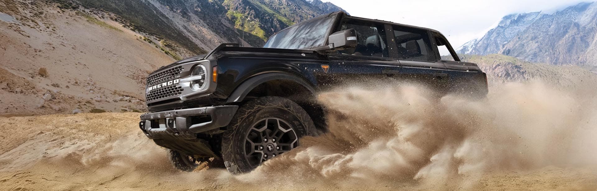 Today's SUVs aren't just for off-roading or camping — they're the kind of cars you can take anywhere, for any reason. There's a lot to love about the Bronco, but with the capability of producing 275 (regular fuel) / 300 (premium fuel) horsepower, the 2.3L EcoBoost I‑4 turbocharged engine is arguably its most impressive feature. And when you tack on the option of multiple drivetrains, the Bronco is about as well-rounded as it gets. For more information on standard and available performance features, see this list: