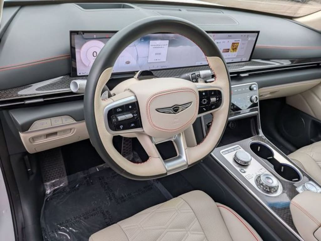 18 Speakers, 4-Wheel Disc Brakes, ABS brakes, Adaptive suspension, Air Conditioning, Alloy wheels, AM/FM radio: SiriusXM, Android Auto & Apple CarPlay, Anti-whiplash front head restraints, Auto High-beam Headlights, Auto tilt-away steering wheel, Auto-dimming door mirrors, Auto-dimming Rear-View mirror, Automatic temperature control, Brake assist, Bumpers: body-color, Compass, Delay-off headlights, Driver door bin, Driver vanity mirror, Dual front impact airbags, Dual front side impact airbags, Electronic Stability Control, Emergency communication system: Genesis Connected Services, Exterior Parking Camera Rear, Four wheel independent suspension, Front anti-roll bar, Front Bucket Seats, Front Center Armrest, Front dual zone A/C, Front reading lights, Fully automatic headlights, Garage door transmitter: HomeLink, Heads-Up Display, Heated and Ventilated Front Bucket Seats, Heated door mirrors, Heated front seats, Heated rear seats, Heated steering wheel, Illuminated Door Scuff Plates, Illuminated entry, Knee airbag, Low tire pressure warning, Memory seat, Nappa Leather Seating Surfaces, Navigation System, Occupant sensing airbag, Option Group 01, Outside temperature display, Overhead airbag, Overhead console, Panic alarm, Passenger door bin, Passenger vanity mirror, Power door mirrors, Power driver seat, Power Liftgate, Power moonroof, Power passenger seat, Power steering, Power windows, Radio data system, Radio: AM/FM/HD Bang & Olufsen Premium Audio, Rain sensing wipers, Rear air conditioning, Rear anti-roll bar, Rear reading lights, Rear seat center armrest, Rear side impact airbag, Rear window defroster, Remote keyless entry, Security system, Speed control, Speed-sensing steering, Speed-Sensitive Wipers, Split folding rear seat, Spoiler, Sport steering wheel, Steering wheel memory, Steering wheel mounted audio controls, Tachometer, Telescoping steering wheel, Tilt steering wheel, Traction control, Trip computer, Turn signal indicator mirrors, Variably intermittent wipers, Ventilated front seats, Ventilated rear seats, Wheel Locks, Wheels: 22" Dark Gray Matte Sport Alloy.