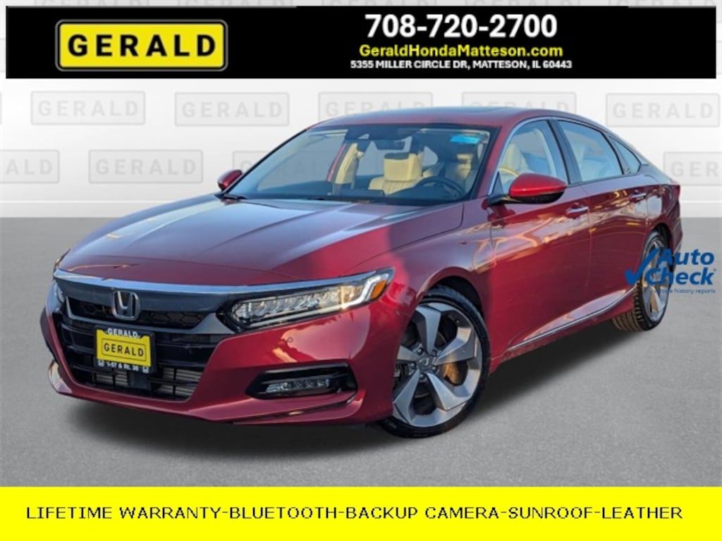 New Price! 2018 Honda Accord Touring Red * THIS CAR IS LOCATED AT GERALD HONDA OF MATTESON PLEASE CALL US TODAY AT 708.720.2700 TO SEE IT, * LIFETIME WARRANTY, * APPLE CARPLAY / ANDROID AUTO, *BLUETOOTH, *REAR VIEW CAMERA, *SUNROOF/MOONROOF, *LEATHER INTERIOR, *HEATED SEATS, Navigation System.