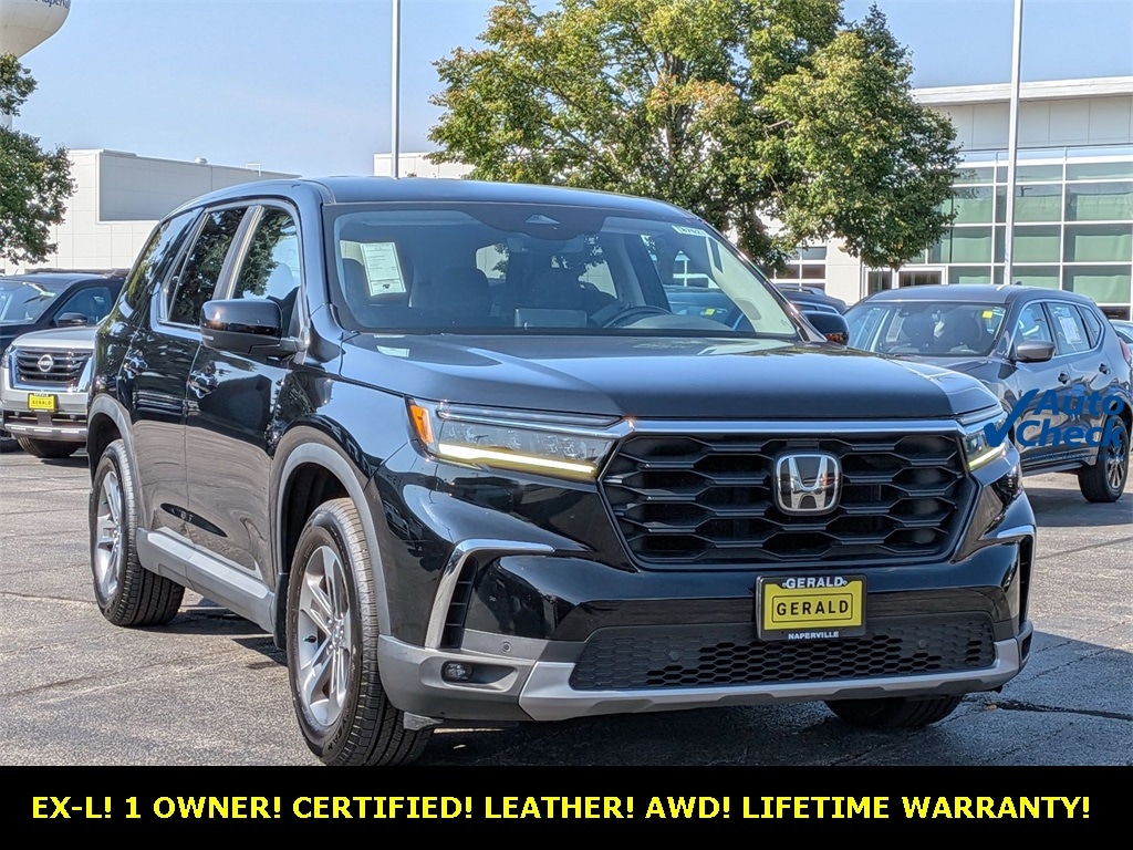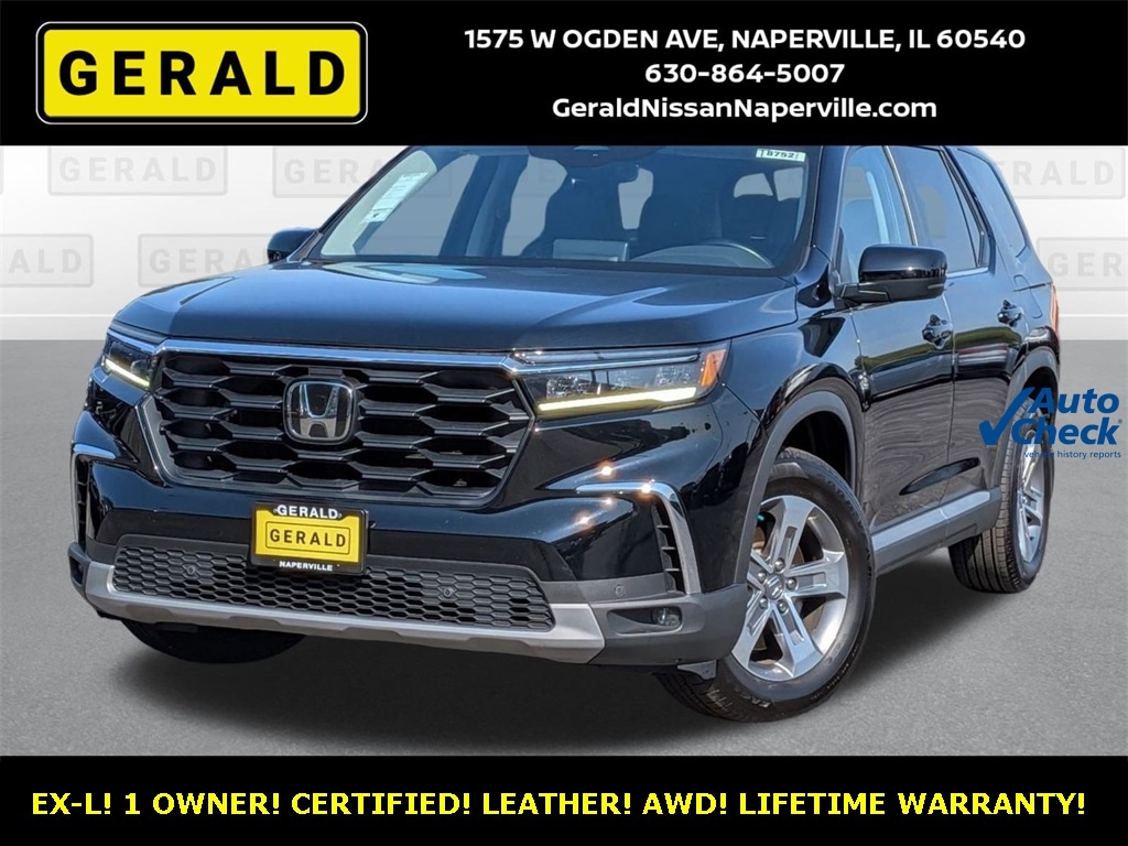 1 OWNER 2023 HONDA PILOT EX-L! LIFETIME WARRANTY! CERTIFIED! CRYSTAL BLACK PEARL! ALL WHEEL DRIVE! BLACK HEATED LEATHER INTERIOR! 7 PASSENGER SEATING! POWER LIFTGATE! MEMORY SEATING! ADAPTIVE CRUISE CONTROL! AUTO HIGH BEAMS! BLUETOOTH! BACKUP CAMERA! APPLE CARPLAY, AND ANDROID AUTO! LED LIGHTING! ABSOLUTELY LIKE NEW! DON'T WAIT! COME SEE US AT GERALD NISSAN OF NAPERVILLE TODAY!!!