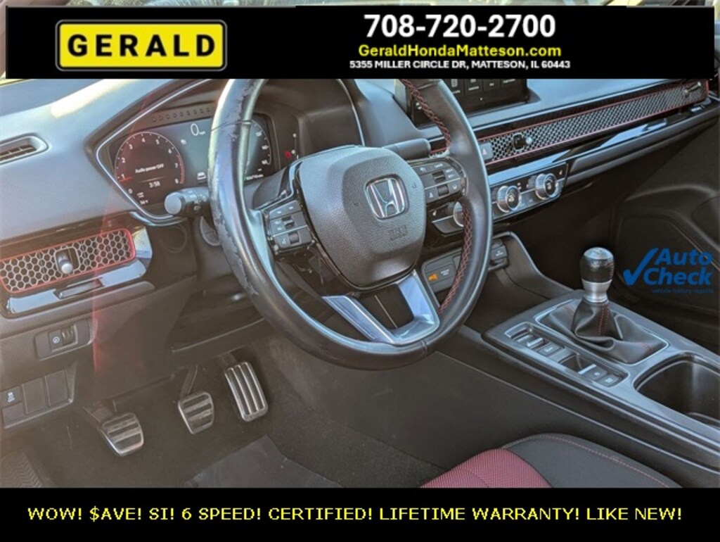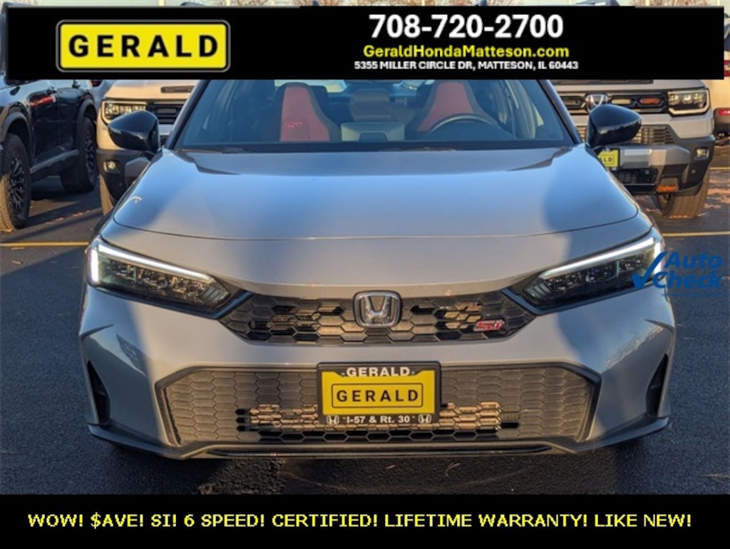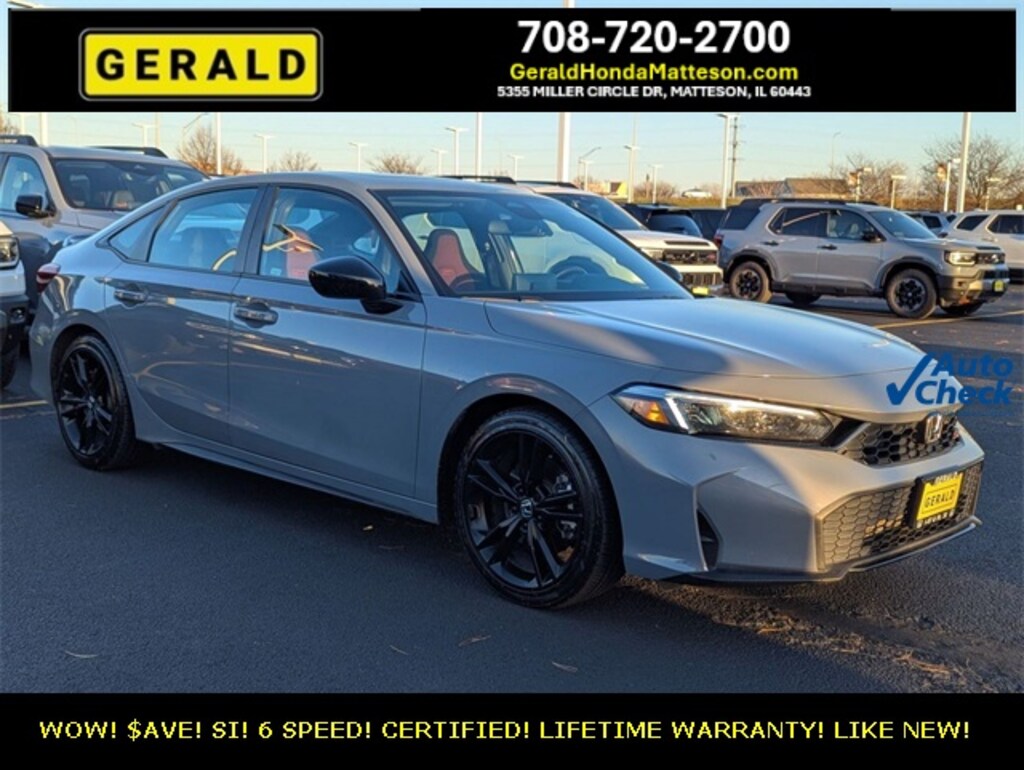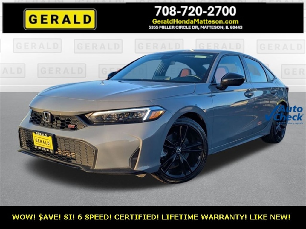 WOW! 1 OWNER CERTIFIED 2025 CIVIC SI! 6 SPEED! URBAN GRAY PEARL! ABSOLUTELY LIKE NEW! LOADED WITH OPTIONS! LIFETIME WARRANTY! DON'T WAIT! $AVE THOUSANDS FROM NEW! COME SEE IT AT GERALD HONDA OF MATTESON TODAY!!!