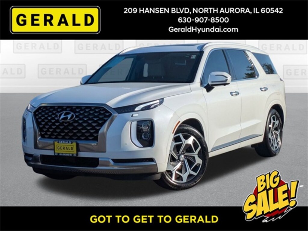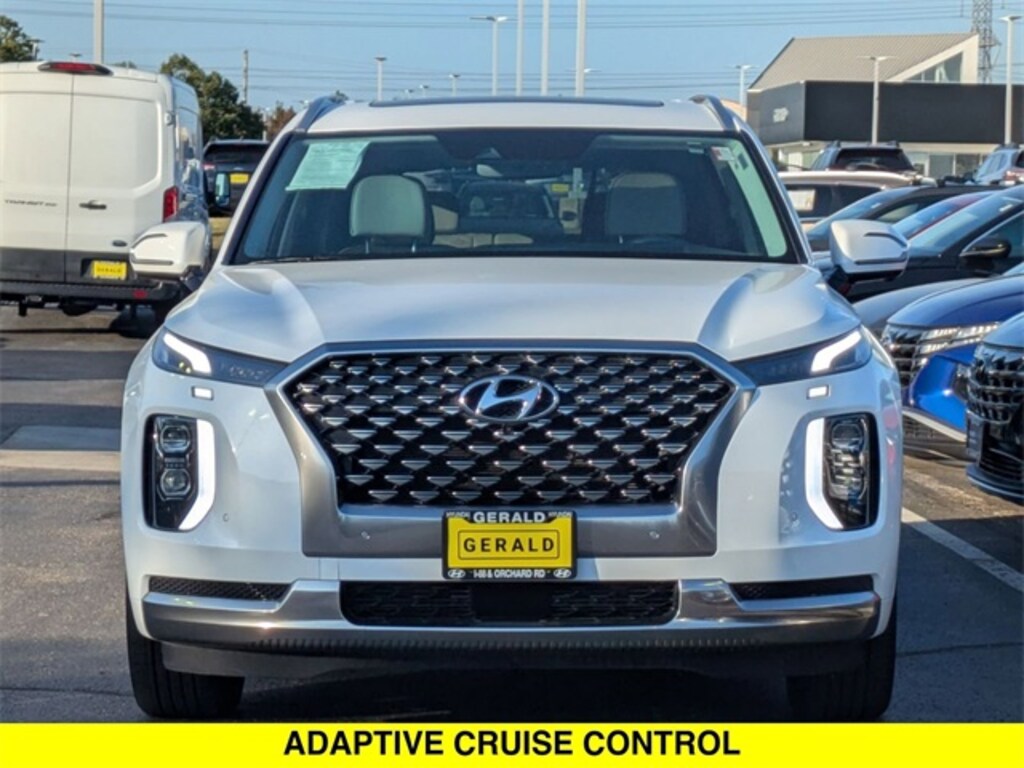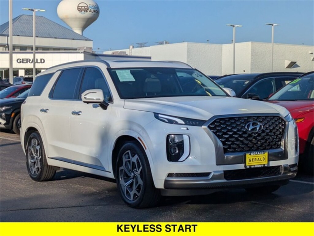 Recent Arrival! 2022 Hyundai Palisade Calligraphy AWD Hyper White 12 Speakers, 3.648 Axle Ratio, 3rd row seats: split-bench, 4-Wheel Disc Brakes, ABS brakes, Air Conditioning, Alloy wheels, AM/FM radio: SiriusXM, Apple CarPlay & Android Auto, Auto High-beam Headlights, Auto-dimming Rear-View mirror, Auto-leveling suspension, Automatic temperature control, Brake assist, Bumpers: body-color, Carpeted Floor Mats, Compass, Delay-off headlights, Driver door bin, Driver vanity mirror, Dual front impact airbags, Dual front side impact airbags, Electronic Stability Control, Emergency communication system: Blue Link Connected Car Service (3-year complimentary subscription), Four wheel independent suspension, Front anti-roll bar, Front Bucket Seats, Front Center Armrest, Front dual zone A/C, Front reading lights, Fully automatic headlights, Garage door transmitter: HomeLink, harman/kardon® Speakers, Heads-Up Display, Heated & Ventilated Front Bucket Seats, Heated door mirrors, Heated front seats, Heated rear seats, Heated steering wheel, Illuminated entry, Knee airbag, Low tire pressure warning, Memory seat, Navigation System, Occupant sensing airbag, Option Group 01, Outside temperature display, Overhead airbag, Overhead console, Panic alarm, Passenger door bin, Passenger vanity mirror, Power door mirrors, Power driver seat, Power Liftgate, Power moonroof, Power passenger seat, Power steering, Power windows, Premium Nappa Leather Seat Trim, Radio data system, Radio: AM/FM/MP3 Premium Audio System, Rain sensing wipers, Rear air conditioning, Rear anti-roll bar, Rear audio controls, Rear reading lights, Rear window defroster, Rear window wiper, Reclining 3rd row seat, Remote keyless entry, Security system, Speed control, Speed-sensing steering, Split folding rear seat, Spoiler, Steering wheel mounted audio controls, Tachometer, Telescoping steering wheel, Tilt steering wheel, Traction control, Trip computer, Turn signal indicator mirrors, Variably intermittent wipers, Ventilated front seats, Ventilated rear seats, Wheels: 20" x 7.5J Calligraphy Exclusive Alloy. Certified. Hyundai Certified Used Vehicles Details: