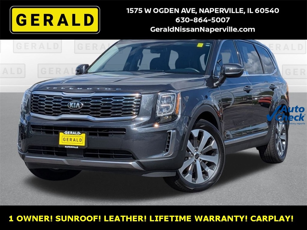 2021 KIA TELLURIDE EX! 1 OWNER! ONLY 50K MILES! LIFETIME WARRANTY! GRAVITY GRAY! BLACK INTERIOR! EX PREMIUM PACKAGE! 20" WHEELS! HEATED AND COOLED LEATHER INTERIOR! POWER SUNROOF! 2ND ROW CAPTAINS CHAIRS! LED LIGHTING! APPLE CARPLAY! ANDROID AUTO! BLUETOOTH! BACKUP CAMERA! BLIND SPOT MONITOR! LANE DEPARTURE WARNING! THIS IS THE ONE! DON'T WAIT! COME SEE US AT GERALD NISSAN OF NAPERVILLE TODAY!!!