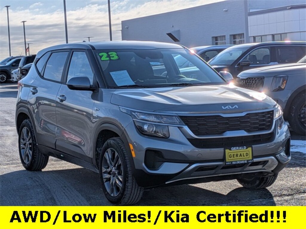 New Price! 2023 Kia Seltos LX Steel Gray *4X4, *BLUETOOTH, *ONE OWNER, *REAR VIEW CAMERA, 4-Wheel Disc Brakes, 6 Speakers, 6.052 Axle Ratio, ABS brakes, Air Conditioning, Alloy wheels, AM/FM radio, Apple CarPlay & Android Auto, Auto High-beam Headlights, Brake assist, Bumpers: body-color, Carpet Floor Mats, Cloth Seat Trim, Delay-off headlights, Driver door bin, Driver vanity mirror, Dual front impact airbags, Dual front side impact airbags, Electronic Stability Control, Exterior Parking Camera Rear, Four wheel independent suspension, Front anti-roll bar, Front Bucket Seats, Front Center Armrest, Front reading lights, Fully automatic headlights, Illuminated entry, Low tire pressure warning, Occupant sensing airbag, Outside temperature display, Overhead airbag, Overhead console, Panic alarm, Passenger door bin, Passenger vanity mirror, Power door mirrors, Power steering, Power windows, Radio: AM/FM/MP3 Display Audio, Rear window defroster, Rear window wiper, Remote keyless entry, Security system, Speed control, Speed-sensing steering, Split folding rear seat, Spoiler, Steering wheel mounted audio controls, Tachometer, Telescoping steering wheel, Tilt steering wheel, Traction control, Trip computer, Variably intermittent wipers, Wheels: 17" Alloy w/Dark Gray Finish. Kia Certified Pre-Owned Details: