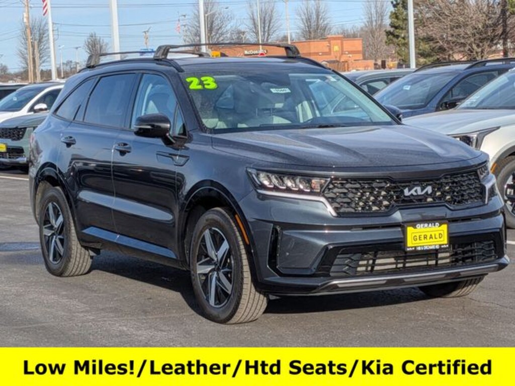 Recent Arrival! New Price! 2023 Kia Sorento S Gravity Gray *BLUETOOTH, *HEATED SEATS, *NAVIGATION, *ONE OWNER, *REAR VIEW CAMERA, 3.798 Axle Ratio, 3rd row seats: split-bench, 4-Wheel Disc Brakes, 6 Speakers, ABS brakes, Air Conditioning, Alloy wheels, AM/FM radio: SiriusXM, Apple CarPlay & Android Auto, Auto High-beam Headlights, Automatic temperature control, Brake assist, Bumpers: body-color, Carpet Floor Mats, Delay-off headlights, Driver door bin, Driver vanity mirror, Dual front impact airbags, Dual front side impact airbags, Electronic Stability Control, Emergency communication system, Exterior Parking Camera Rear, Four wheel independent suspension, Front anti-roll bar, Front Bucket Seats, Front Center Armrest, Front dual zone A/C, Front reading lights, Fully automatic headlights, Heated door mirrors, Heated Front Bucket Seats, Heated front seats, Illuminated entry, Knee airbag, Leather Shift Knob, Leather steering wheel, Low tire pressure warning, Navigation System, Occupant sensing airbag, Outside temperature display, Overhead airbag, Overhead console, Panic alarm, Passenger door bin, Passenger vanity mirror, Power door mirrors, Power driver seat, Power steering, Power windows, Radio data system, Radio: AM/FM Audio System, Rear air conditioning, Rear anti-roll bar, Rear reading lights, Rear seat center armrest, Rear window defroster, Rear window wiper, Remote keyless entry, Roof rack: rails only, Security system, Smart Key w/ Push Button and Remote Start, Speed control, Speed-sensing steering, Split folding rear seat, Spoiler, Steering wheel mounted audio controls, SynTex Artificial Leather Seat Trim, Tachometer, Telescoping steering wheel, Tilt steering wheel, Traction control, Trip computer, Turn signal indicator mirrors, Variably intermittent wipers, Wheels: 7.5J x 18" Machine-Finished Alloy. Kia Certified Pre-Owned Details: