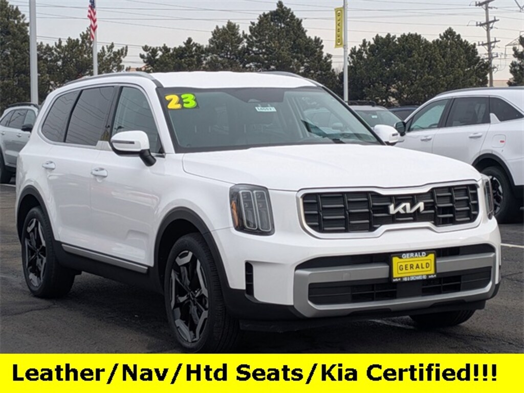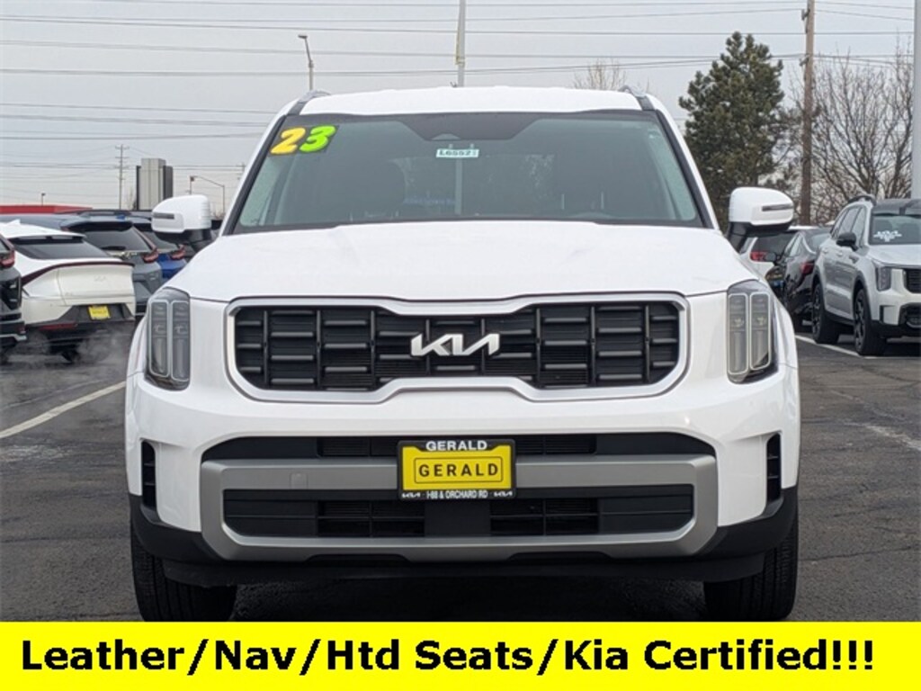 Recent Arrival! 2023 Kia Telluride S Glacial White Pearl *BLUETOOTH, *NAVIGATION, *ONE OWNER, *REAR VIEW CAMERA, 3.510 Axle Ratio, 3rd row seats: split-bench, 4-Wheel Disc Brakes, 6 Speakers, ABS brakes, Air Conditioning, Alloy wheels, AM/FM radio: SiriusXM, Apple CarPlay & Android Auto, Auto High-beam Headlights, Automatic temperature control, Brake assist, Bumpers: body-color, Carpet Floor Mats, Delay-off headlights, Driver door bin, Driver vanity mirror, Dual front impact airbags, Dual front side impact airbags, Electrochromic Mirror w/HomeLink & Compass, Electronic Stability Control, Emergency communication system: 911 Connect, Exterior Parking Camera Rear, Four wheel independent suspension, Front anti-roll bar, Front Bucket Seats, Front Center Armrest, Front dual zone A/C, Front reading lights, Fully automatic headlights, Heated door mirrors, Heated Front Bucket Seats, Heated front seats, Illuminated entry, Knee airbag, Leather Shift Knob, Leather steering wheel, Low tire pressure warning, Navigation System, Occupant sensing airbag, Outside temperature display, Overhead airbag, Overhead console, Panic alarm, Passenger door bin, Passenger vanity mirror, Power door mirrors, Power driver seat, Power steering, Power windows, Radio data system, Radio: AM/FM Display Audio System, Rear air conditioning, Rear anti-roll bar, Rear audio controls, Rear reading lights, Rear side impact airbag, Rear window defroster, Rear window wiper, Reclining 3rd row seat, Remote keyless entry, Roof rack: rails only, Security system, Smart Key w/ Push Button and Remote Start, Speed control, Speed-sensing steering, Split folding rear seat, Spoiler, Steering wheel mounted audio controls, SynTex Synthetic Leather Seat Trim, Tachometer, Telescoping steering wheel, Tilt steering wheel, Traction control, Trip computer, Turn signal indicator mirrors, Variably intermittent wipers, Wheels: 20" x 7.5" Black Finish. Kia Certified Pre-Owned Details: