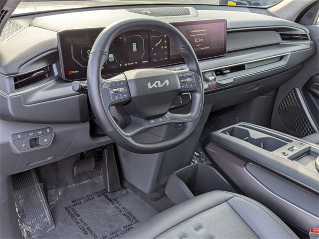 Recent Arrival! 2024 Kia EV9 Wind Pebble Gray *4X4, *BLUETOOTH, *HEATED SEATS, *LEATHER INTERIOR, *NAVIGATION, *ONE OWNER, *REAR VIEW CAMERA, *SUNROOF/MOONROOF, 13.16 Axle Ratio, 3rd row seats: split-bench, 4-Wheel Disc Brakes, 8 Speakers, ABS brakes, Air Conditioning, Alloy wheels, AM/FM radio, Apple CarPlay & Android Auto, Auto High-beam Headlights, Auto-dimming Rear-View mirror, Automatic temperature control, Brake assist, Bumpers: body-color, Carpeted Floor Mat, 7-Passenger, Delay-off headlights, Digital Key Card, Driver door bin, Driver vanity mirror, Dual front impact airbags, Dual front side impact airbags, Electronic Stability Control, Emergency communication system: 911 Connect, Exterior Parking Camera Rear, Folding Cargo Tray, Four wheel independent suspension, Front anti-roll bar, Front Bucket Seats, Front Center Armrest w/Storage, Front dual zone A/C, Front reading lights, Fully automatic headlights, Garage door transmitter: HomeLink, Heated & Ventilated Front Bucket Seats, Heated door mirrors, Heated front seats, Heated steering wheel, Illuminated entry, Knee airbag, Low tire pressure warning, Navigation System, Occupant sensing airbag, Outside temperature display, Overhead airbag, Overhead console, Panic alarm, Passenger door bin, Passenger vanity mirror, Power door mirrors, Power driver seat, Power Liftgate, Power moonroof, Power passenger seat, Power steering, Power windows, Radio data system, Radio: AM/FM/MP3/HD Radio/SiriusXM, Rain sensing wipers, Rear air conditioning, Rear anti-roll bar, Rear reading lights, Rear seat center armrest, Rear window defroster, Rear window wiper, Reclining 3rd row seat, Remote keyless entry, Security system, Smart Key w/ Push Button and Remote Start, Speed control, Speed-sensing steering, Split folding rear seat, Spoiler, Steering wheel mounted audio controls, SynTex Leather Seats, Telescoping steering wheel, Tilt steering wheel, Tow Hitch, Traction control, Trip computer, Turn signal indicator mirrors, Variably intermittent wipers, Ventilated front seats, Wheels: 19" Black & Machined Finished Alloy. Kia Certified Pre-Owned Details:
