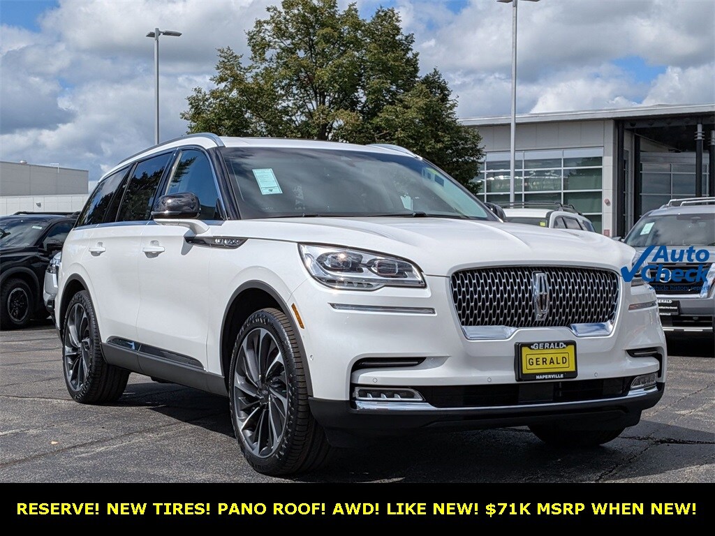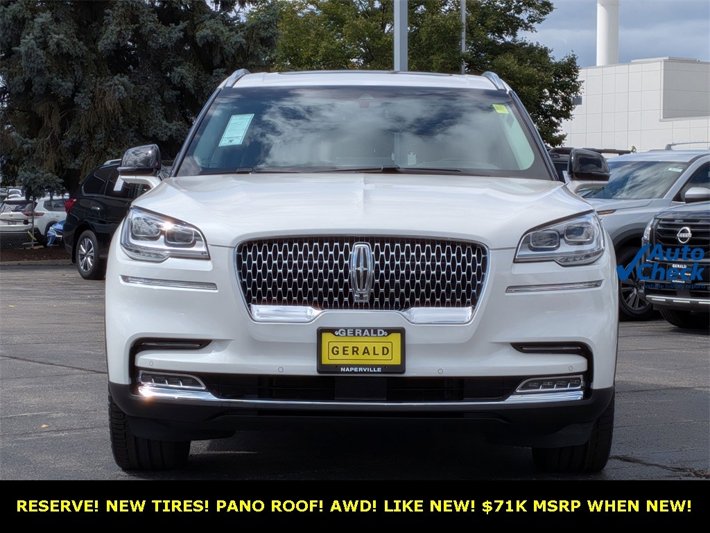 2020 LINCOLN AVIATOR RESERVE! ONLY 56K MILES! LIFETIME WARRANTY! CERTIFIED! PRISTINE WHITE METALLIC! $71K MSRP WHEN NEW! 202A PACKAGE ($11625) WITH, CO PILOT 360, PANORAMIC SUNROOF, 22" WHEELS, LUXURY PACKAGE, CLASS IV TRAILER HITCH, AND THE ILLUMINATION PACKAGE! 360 CAMERA! APPLE CARPLAY! ANDROID AUTO! HEATED AND COOLED SEATS! REVEL 14 SPEAKER AUDIO! POWER STEERING COLUMN! QUAD ZONE CLIMATE CONTROL! REMOTE START! BLIND SPOT! THIS IS THE ONE! FULLY SERVICED WITH NEW TIRES! DON'T WAIT! COME SEE US AT GERALD NISSAN OF NAPERVILLE TODAY!!!