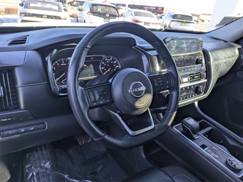 Nissan Pathfinder SL. Purchased the car July 2021 when they first came out. I love everything about this car. I have not had any issues to date. Just went thru a snow storm with about 7inches of ice and snow. I am on a pretty steep hill and zero issues in the snow and ice. I really can't think of an issue i have with this car. I have taken this on 9 hour trip with a total of seven and had no issues in the mountains.… - 5.0