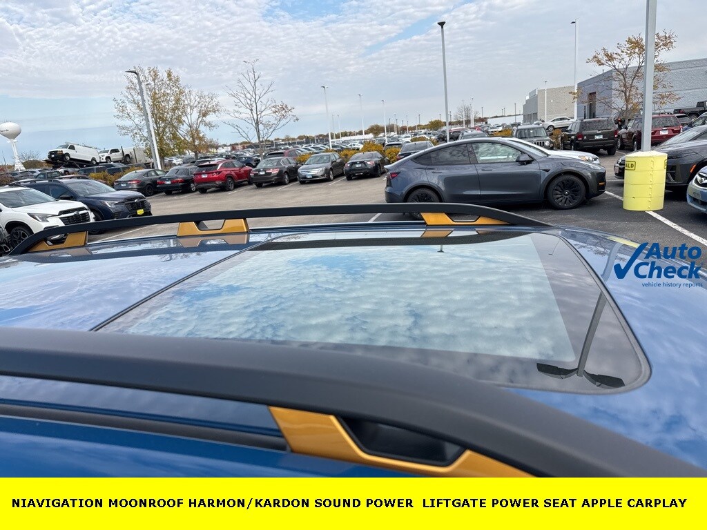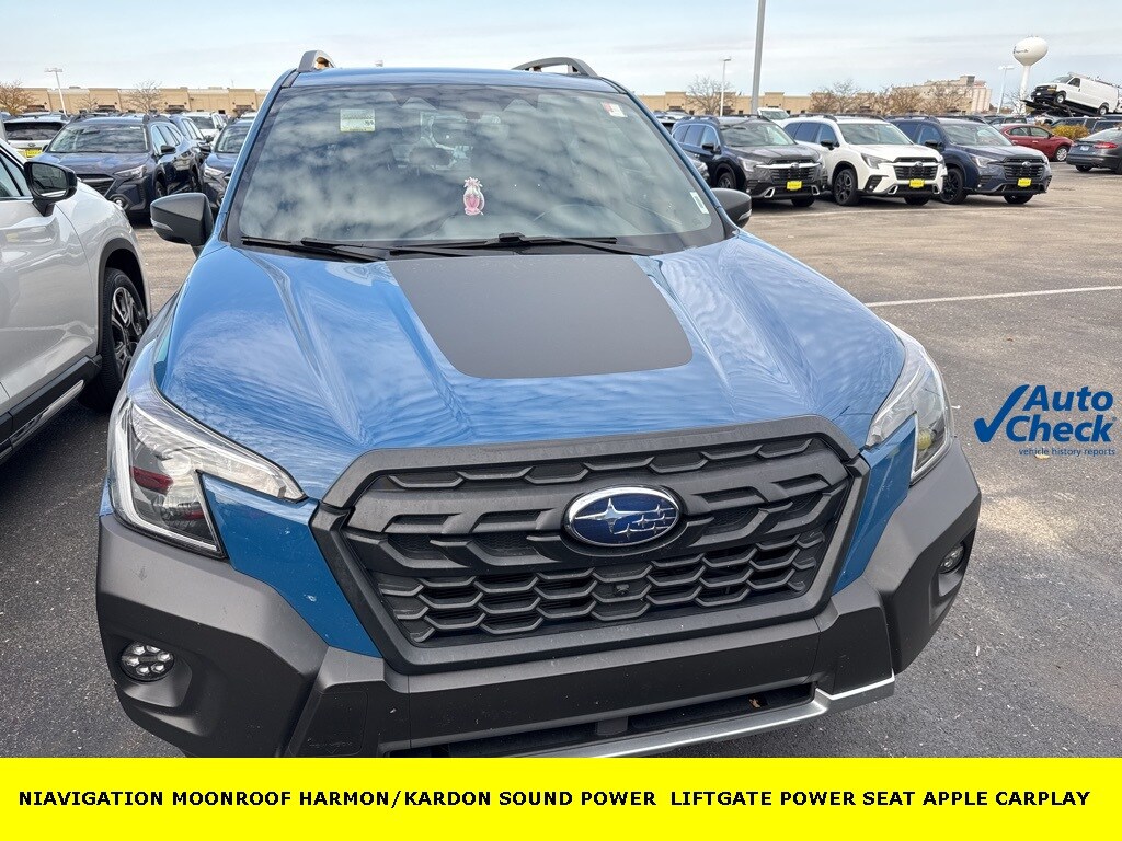 HOME OF THE LIFETIME WARRANTY, 4-Wheel Disc Brakes, ABS brakes, Air Conditioning, Alloy wheels, AM/FM radio: SiriusXM, Anti-whiplash front head restraints, Audio System & Navigation & Power Rr Gate, Auto High-beam Headlights, Auto-Dimming Mirror w/Compass & HomeLink, Automatic temperature control, Brake assist, Bumpers: body-color, Cargo Net, Cargo Sidewall Protector, CD player, Driver door bin, Driver vanity mirror, Dual front impact airbags, Dual front side impact airbags, Electronic Stability Control, Emergency communication system: STARLINK Safety and Security (Subscription Required), Exterior Parking Camera Rear, Four wheel independent suspension, Front anti-roll bar, Front Bucket Seats, Front Center Armrest, Front dual zone A/C, Front fog lights, Front reading lights, Fully automatic headlights, harman/kardon 576W Amp & Speaker System, Heated door mirrors, Heated Front Bucket Seats, Heated front seats, Illuminated entry, Knee airbag, Leather Shift Knob, Low tire pressure warning, Navigation System, Occupant sensing airbag, Outside temperature display, Overhead airbag, Overhead console, Panic alarm, Passenger door bin, Passenger vanity mirror, Power door mirrors, Power driver seat, Power moonroof: Panoramic, Power Rear Gate, Power steering, Power windows, Radio: Subaru Starlink 8.0" Multimedia Nav System, Rear anti-roll bar, Rear Bumper Cover, Rear seat center armrest, Rear window defroster, Rear window wiper, RearView Monitor, Remote keyless entry, Roof rack: rails only, Security system, Speed control, Speed-sensing steering, Split folding rear seat, Spoiler, STARLINK/Apple CarPlay/Android Auto, Steering wheel mounted audio controls, Tachometer, Telescoping steering wheel, Textured StarTex Upholstery, Tilt steering wheel, Traction control, Trip computer, Turn signal indicator mirrors, Variably intermittent wipers, Wilderness Splash Guards. 25/28 City/Highway MPG