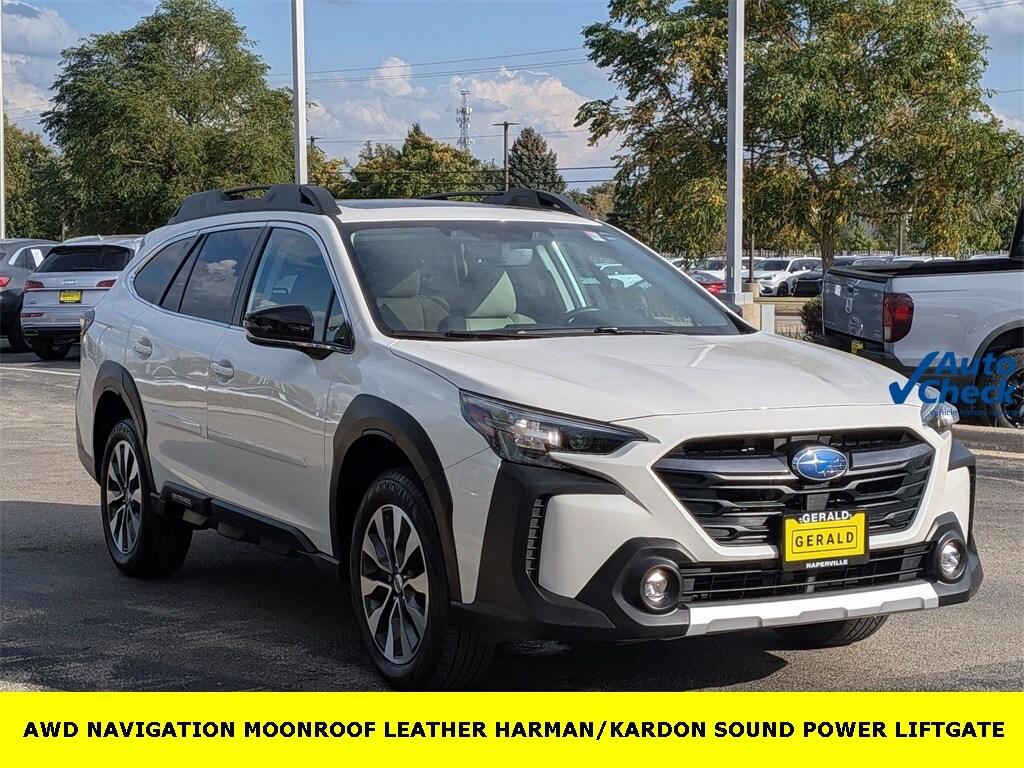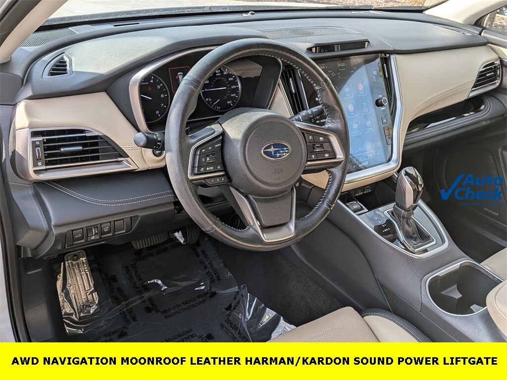 HOME OF THE LIFETIME WARRANTY, 12 Speakers, 4-Wheel Disc Brakes, ABS brakes, Air Conditioning, Alloy wheels, AM/FM radio: SiriusXM, Auto High-beam Headlights, Auto-Dimming Exterior Mirror w/Approach Light, Auto-dimming Rear-View mirror, Automatic temperature control, Brake assist, Bumpers: body-color, Compass, Crystal White Pearl Body Side Molding, Driver door bin, Driver vanity mirror, Dual front impact airbags, Dual front side impact airbags, Electronic Stability Control, Emergency communication system: STARLINK Safety Plus (3-year free trial), Exterior Parking Camera Rear, Four wheel independent suspension, Front anti-roll bar, Front Bucket Seats, Front Center Armrest w/Storage, Front dual zone A/C, Front fog lights, Front reading lights, Fully automatic headlights, Garage door transmitter: HomeLink, harman/kardon® Speakers, Heated door mirrors, Heated Front Bucket Seats, Heated front seats, Heated rear seats, Heated steering wheel, HVAC memory, Illuminated entry, Knee airbag, Leather Shift Knob, Leather steering wheel, Low tire pressure warning, Memory seat, Navigation System, Occupant sensing airbag, Outside temperature display, Overhead airbag, Overhead console, Panic alarm, PANORAOMIC ROOF, Passenger door bin, Passenger vanity mirror, Perforated Leather-Trimmed Upholstery, Power door mirrors, Power driver seat, Power Liftgate, Power passenger seat, Power steering, Power windows, Radio: Subaru STARLINK 11.6" Multimedia Nav System, Rear anti-roll bar, Rear Bumper Cover, Rear seat center armrest, Rear window defroster, Rear window wiper, Remote keyless entry, Roof rack, Security system, Speed control, Speed-sensing steering, Split folding rear seat, Spoiler, Standard Model, Steering wheel mounted audio controls, Steering Wheel Paddle Shift Control Switches, Tachometer, Telescoping steering wheel, Tilt steering wheel, Traction control, Trip computer, Turn signal indicator mirrors, Variably intermittent wipers. 22/29 City/Highway MPG