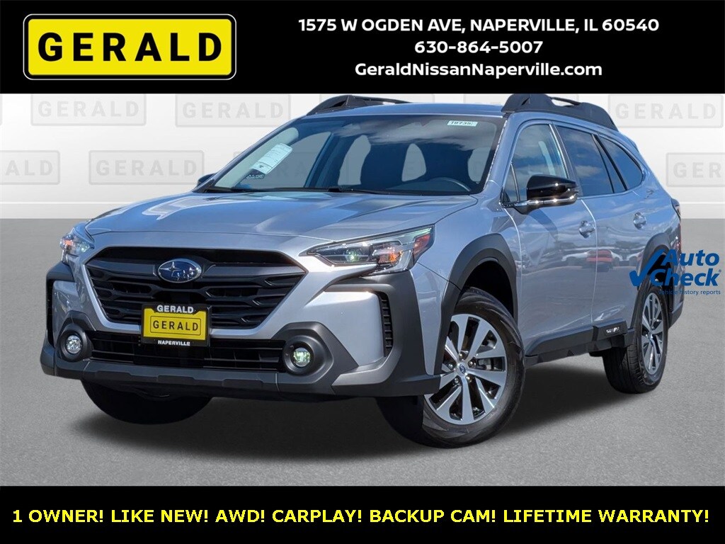 1 OWNER 2023 SUBARU OUTBACK PREMIUM! LIFETIME WARRANTY! CERTIFIED! ONLY 15K MILES! ICE SILVER METALLIC! APPLE CARPLAY, ANDROID AUTO, BLUETOOTH, AND BACKUP CAMERA! HEATED SEATS! LANE DEPARTURE! AUTO HIGH BEAMS! POWER SEAT! LED LIGHTING! FULLY SERVICED AND READY TO GO! DON'T WAIT! COME SEE US AT GERALD NISSAN OF NAPERVILLE TODAY!!!