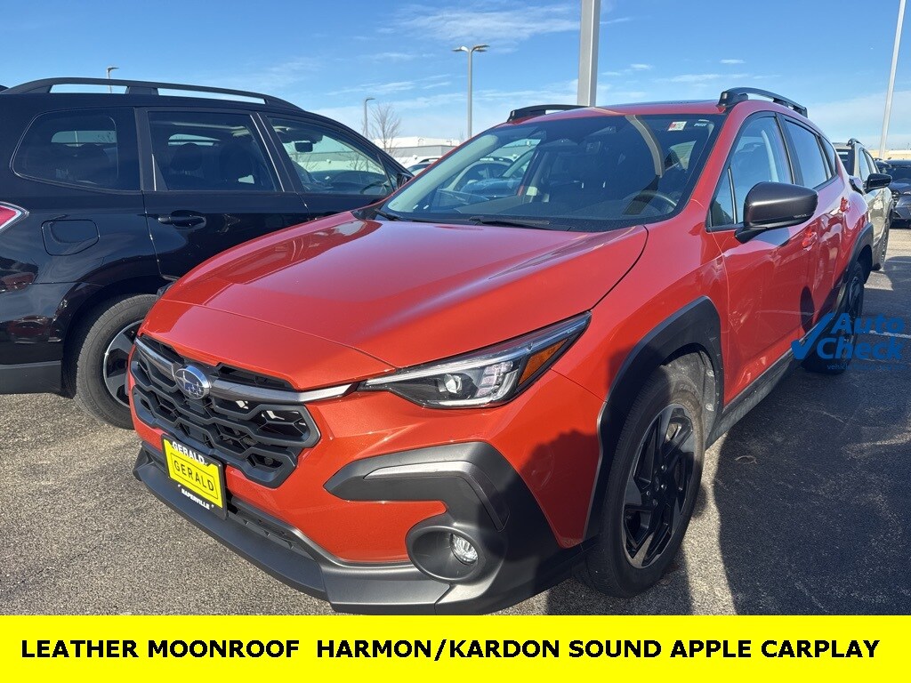 4-Wheel Disc Brakes, ABS brakes, Air Conditioning, Alloy wheels, AM/FM radio: SiriusXM, Anti-whiplash front head restraints, Auto High-beam Headlights, Auto-Dimming Exterior Mirror w/Approach Light, Auto-Dimming Mirror w/Compass & HomeLink, Automatic temperature control, Brake assist, Bumpers: body-color, Crosstrek Mirror Package, Driver door bin, Driver vanity mirror, Dual front impact airbags, Dual front side impact airbags, Electronic Stability Control, Emergency communication system: STARLINK Safety and Security (Subscription Required), Exterior Parking Camera Rear, Four wheel independent suspension, Front anti-roll bar, Front Bucket Seats, Front Center Armrest, Front dual zone A/C, Front fog lights, Front reading lights, Fully automatic headlights, harman/kardon Audio & Power Moonroof & Navigation, harman/kardon Surround Sound Speaker System, Heated door mirrors, Heated Front Bucket Seats, Heated front seats, Illuminated entry, Knee airbag, Leather Shift Knob, Leather-Trimmed Upholstery, Low tire pressure warning, Occupant sensing airbag, Outside temperature display, Overhead airbag, Overhead console, Panic alarm, Passenger door bin, Passenger vanity mirror, Power door mirrors, Power driver seat, Power Moonroof, Power steering, Power windows, Radio data system, Radio: Subaru STARLINK 11.6" Multimedia Nav System, Radio: Subaru STARLINK 11.6" Multimedia Plus Sys, Rear anti-roll bar, Rear Bumper Cover, Rear seat center armrest, Rear window defroster, Rear window wiper, RearView Monitor, Remote keyless entry, Security system, Speed control, Speed-sensing steering, Split folding rear seat, Spoiler, STARLINK/Apple CarPlay/Android Auto, Steering wheel mounted audio controls, Tachometer, Telescoping steering wheel, Tilt steering wheel, Traction control, Trip computer, Turn signal indicator mirrors, Variably intermittent wipers. 26/33 City/Highway MPG Odometer is 4312 miles below market average!