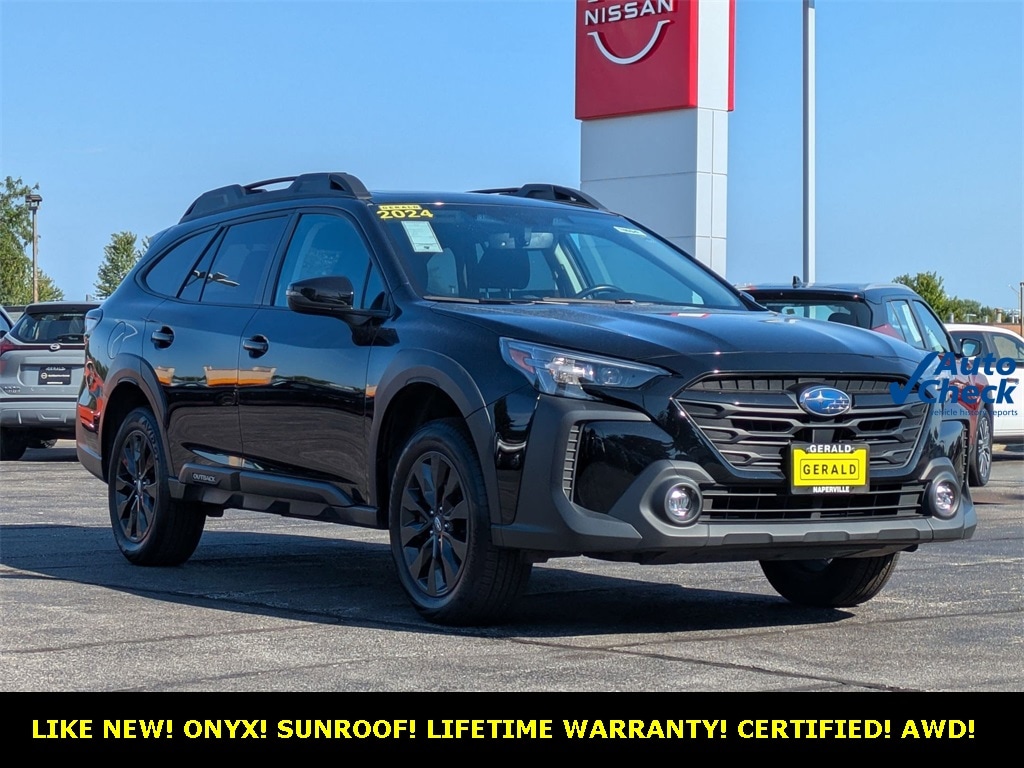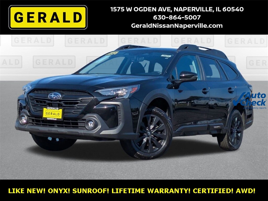 2024 SUBARU OUTBACK ONYX! 1 OWNER! CERTIFIED! LIFETIME WARRANTY! CRYSTAL BLACK SILICA! ALL WHEEL DRIVE! POWER SUNROOF! HEATED LEATHER INTERIOR! KEYLESS START! APPLE CARPLAY! ANDROID AUTO! BACKUP CAMERA! SUPER CLEAN AND LIKE NEW! DON'T WAIT! COME SEE US AT GERALD NISSAN OF NAPERVILLE TODAY!!!