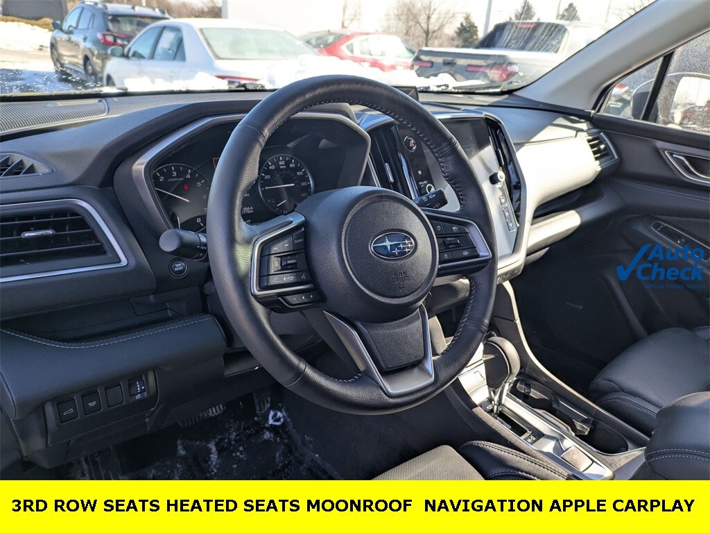 HOME OF THE LIFETIME WARRANTY, 14 Speakers, 3rd row seats: bench, 4-Wheel Disc Brakes, ABS brakes, Air Conditioning, Alloy wheels, AM/FM radio: SiriusXM with 360L, Apple CarPlay & Android Auto, Auto High-beam Headlights, Auto-Dimming Exterior Mirror w/Approach Light, Auto-dimming Rear-View mirror, Automatic temperature control, Autumn Green Metallic Body Side Molding, Brake assist, Bumpers: body-color, Compass, Delay-off headlights, Driver door bin, Driver vanity mirror, Dual front impact airbags, Dual front side impact airbags, Electronic Stability Control, Emergency communication system: MySubaru Safety (3-year free trial), Exterior Parking Camera Rear, Four wheel independent suspension, Front anti-roll bar, Front Bucket Seats, Front Center Armrest, Front dual zone A/C, Front fog lights, Front reading lights, Fully automatic headlights, Garage door transmitter: HomeLink, harman/kardon® Speakers, Heated door mirrors, Heated Front Bucket Seats, Heated front seats, Heated rear seats, Heated steering wheel, Illuminated entry, Knee airbag, Leather Shift Knob, Leather steering wheel, LED Upgrade, Low tire pressure warning, Memory seat, Navigation System, Occupant sensing airbag, Outside temperature display, Overhead airbag, Overhead console, Panic alarm, PANORAOMIC ROOF, Passenger door bin, Passenger vanity mirror, Perforated Leather-Trimmed Upholstery, Power door mirrors, Power driver seat, Power Liftgate, Power passenger seat, Power steering, Power windows, Radio data system, Radio: Subaru 11.6" Multimedia System w/Navigation, Rear air conditioning, Rear anti-roll bar, Rear Bumper Cover, Rear reading lights, Rear seat center armrest, Rear window defroster, Rear window wiper, Reclining 3rd row seat, Remote keyless entry, Security system, Speed control, Speed-sensing steering, Splash Guards, Split folding rear seat, Spoiler, Standard Model, Steering wheel mounted audio controls, Tachometer, Telescoping steering wheel, Tilt steering wheel, Traction control, Trip computer, Turn signal indicator mirrors, Variably intermittent wipers. Odometer is 3496 miles below market average!