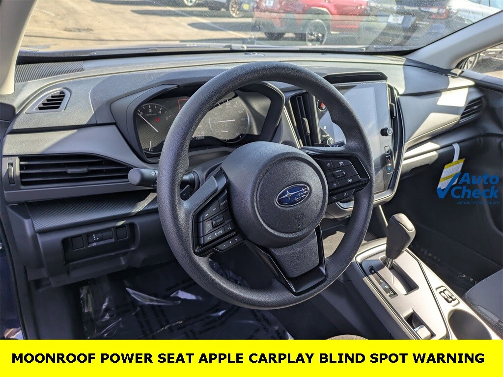 HOME OF THE LIFETIME WARRANTY, 10-Way Power Driver's Seat, 4-Wheel Disc Brakes, ABS brakes, Air Conditioning, All-Weather Package, Alloy wheels, AM/FM radio: SiriusXM, Anti-whiplash front head restraints, Auto High-beam Headlights, Auto-Dimming Mirror with Compass and HomeLink, Automatic temperature control, Blind Spot Detection (BSD), Brake assist, BSD/RCTA and All Weather Package and Power Driver Seat and Power Moonroof, Bumpers: body-color, Cloth Upholstery, Convenience Package #2, Driver door bin, Driver vanity mirror, Dual front impact airbags, Dual front side impact airbags, Dual-Mode Heated Front Seats, Electronic Stability Control, Emergency communication system: MySubaru Companion (5-years free), Exterior Parking Camera Rear, Four wheel independent suspension, Front anti-roll bar, Front Bucket Seats, Front Center Armrest, Front dual zone A/C, Front fog lights, Front reading lights, Fully automatic headlights, Heated Power Exterior Mirrors, Illuminated entry, Knee airbag, Low tire pressure warning, Occupant sensing airbag, Outside temperature display, Overhead airbag, Overhead console, Panic alarm, Passenger door bin, Passenger vanity mirror, Power door mirrors, Power Moonroof, Power steering, Power windows, Radio data system, Radio: Subaru 11.6" Multimedia Plus System, Rear anti-roll bar, Rear Bumper Cover, Rear Cross-Traffic Alert (RCTA) System, Rear seat center armrest, Rear Seatback Protector, Rear side impact airbag, Rear window defroster, Rear window wiper, RearView Monitor, Remote keyless entry, Security system, Speed control, Speed-sensing steering, Splash Guards, Split folding rear seat, Spoiler, Steering wheel mounted audio controls, Tachometer, Telescoping steering wheel, Tilt steering wheel, Traction control, Trip computer, Turn signal indicator mirrors, Variably intermittent wipers, Windshield De-Icer Wipers. 26/33 City/Highway MPG
