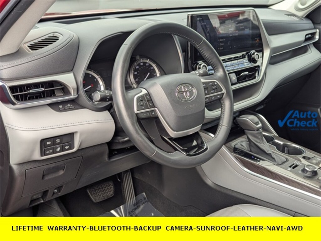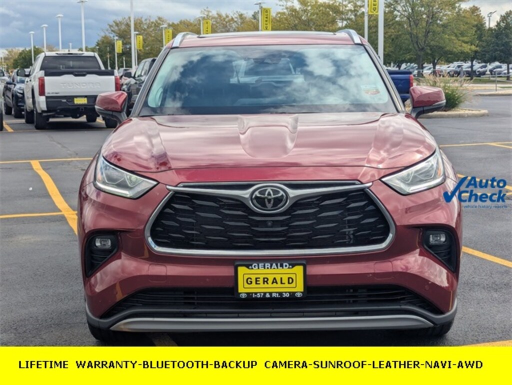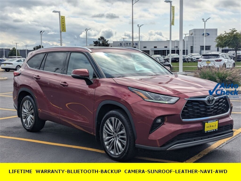 Recent Arrival! 2022 Toyota Highlander Platinum AWD Ruby Flare Pearl *ONE OWNER, *BLUETOOTH, *BACKUP CAMERA, *LEATHER, *3RD ROW SEATING, *AWD, Digital Rearview Mirror w/HomeLink, High Grade LED Projector Headlights, Navigation system: Dynamic Navigation (3-year trial), Panoramic Moonroof, Panoramic View Monitor, Platinum Package. 20/27 City/Highway MPG Toyota Gold Certified Details: