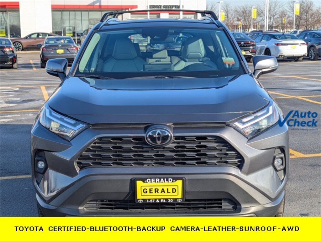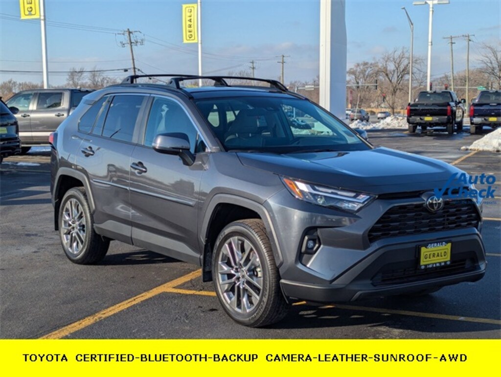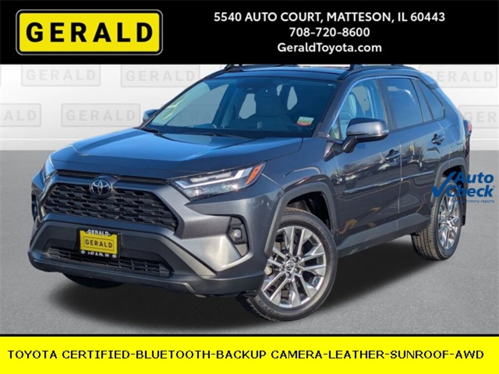 New Price! 2023 Toyota RAV4 XLE Premium AWD Magnetic Gray Metallic *ONE OWNER, *BLUETOOTH, *BACKUP CAMERA, *AWD, ROOF RACK CROSS BARS, 3 Spoke Leather Heated Steering Wheel, Driver Seat w/2-Position Memory Function, Front Door Smart Key System w/Push Button Start, Front Seat Heating, LED Front Fog & Driving Lamp, Power moonroof, Rain Sensing Front Wipers, Tilt & Slide Moon Roof, XLE Premium Grade Weather Package, XLE Premium Package. 27/33 City/Highway MPG Odometer is 4853 miles below market average! Toyota Gold Certified Details: