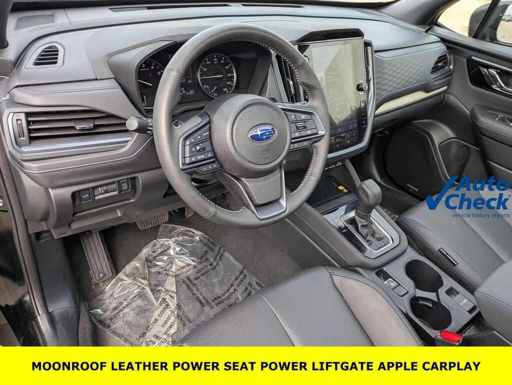 HOME OF THE LIFETIME WARRANTY, 4-Wheel Disc Brakes, ABS brakes, Air Conditioning, Alloy wheels, AM/FM radio: SiriusXM with 360L, Anti-whiplash front head restraints, Auto High-beam Headlights, Auto-Dimming Mirror w/Compass & HomeLink, Automatic temperature control, Body Side Molding - Crystal Black Silica, Brake assist, Bumpers: body-color, Driver door bin, Driver vanity mirror, Dual front impact airbags, Dual front side impact airbags, Electronic Stability Control, Emergency communication system: MySubaru Safety (3-year free trial), Exterior Parking Camera Rear, Four wheel independent suspension, Front anti-roll bar, Front Bucket Seats, Front Center Armrest, Front dual zone A/C, Front fog lights, Front reading lights, Fully automatic headlights, harman/kardon Audio & Navigation & RAB, Heated door mirrors, Heated Front Bucket Seats, Heated front seats, Heated steering wheel, Illuminated entry, Knee airbag, Leather steering wheel, Low tire pressure warning, Occupant sensing airbag, Outside temperature display, Overhead airbag, Overhead console, Panic alarm, Passenger door bin, Passenger vanity mirror, Perforated Leather-Trimmed Upholstery, Power door mirrors, Power driver seat, Power Liftgate, Power moonroof: Panoramic, Power passenger seat, Power steering, Power windows, Radio: Subaru 11.6" Multimedia Navigation System, Radio: Subaru 11.6" Multimedia Plus System, Rear anti-roll bar, Rear Bumper Cover, Rear seat center armrest, Rear window defroster, Rear window wiper, RearView Monitor, Remote keyless entry, Reverse Automatic Braking (RAB) System, Security system, Speed control, Speed-sensing steering, Splash Guards, Split folding rear seat, Spoiler, Steering wheel mounted audio controls, Tachometer, Telescoping steering wheel, Tilt steering wheel, Traction control, Trip computer, Turn signal indicator mirrors, Variably intermittent wipers. 26/33 City/Highway MPG Odometer is 3199 miles below market average!
