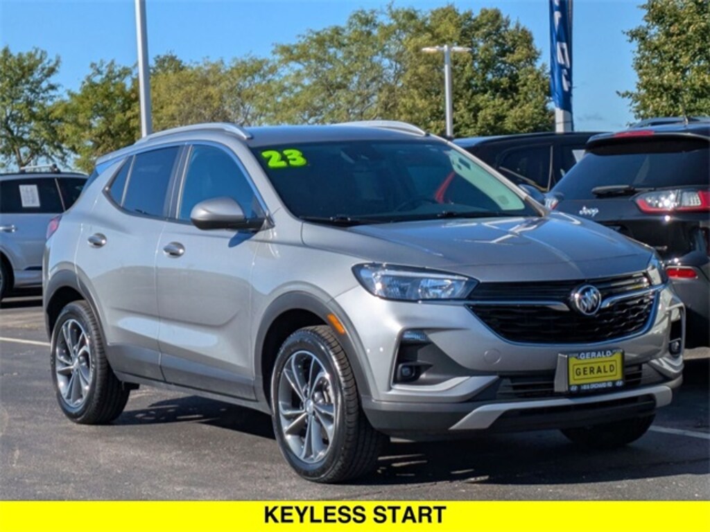 Recent Arrival! 2023 Buick Encore GX Select AWD Moonstone Gray Metallic 18" Machined Aluminum Wheels, 2 USB Ports w/Auxiliary Input Jack, 2-Way Power Driver Lumbar Control, 3 Years of OnStar & Connected Services Plan (DISC), 3.17 Final Drive Axle Ratio, 4-Way Manual Passenger Seat Adjuster, 4-Wheel Disc Brakes, 6 Speakers, 8-Way Power Driver Seat Adjuster, ABS brakes, Air Conditioning, All-Weather Floor Mats, Alloy wheels, AM/FM radio: SiriusXM, Auto High-beam Headlights, Automatic temperature control, Brake assist, Bumpers: body-color, Cloth w/Leatherette Seat Trim, Compass, Delay-off headlights, Driver door bin, Driver vanity mirror, Dual front impact airbags, Dual front side impact airbags, Electronic Stability Control, Emergency communication system: OnStar and Buick connected services capable, Enhanced Performance 6-Speaker System, Front anti-roll bar, Front Bucket Seats, Front Center Armrest, Front dual zone A/C, Front fog lights, Front License Plate Bracket, Front reading lights, Front wheel independent suspension, Fully automatic headlights, Hands Free Power Liftgate, Hands-Free Power Liftgate Package, Heated door mirrors, Heated Driver & Front Passenger Seats, Heated front seats, Illuminated entry, Knee airbag, Lane Change Alert w/Side Blind Zone Alert, Low tire pressure warning, Occupant sensing airbag, Outside temperature display, Overhead airbag, Overhead console, Panic alarm, Passenger door bin, Passenger vanity mirror, Power door mirrors, Power driver seat, Power steering, Power windows, Preferred Equipment Group 1SD, Radio data system, Radio: 8" Diagonal Buick Infotainment System, Rear Cross Traffic Alert, Rear reading lights, Rear seat center armrest, Rear side impact airbag, Rear window defroster, Rear window wiper, Remote keyless entry, Ride & Handling Suspension, Safety Package II, Security system, SiriusXM Radio, Speed control, Speed-sensing steering, Split folding rear seat, Spoiler, Steering wheel mounted audio controls, Tachometer, Telescoping steering wheel, Tilt steering wheel, Traction control, Trip computer, Variably intermittent wipers, Wireless Apple CarPlay/Wireless Android Auto.