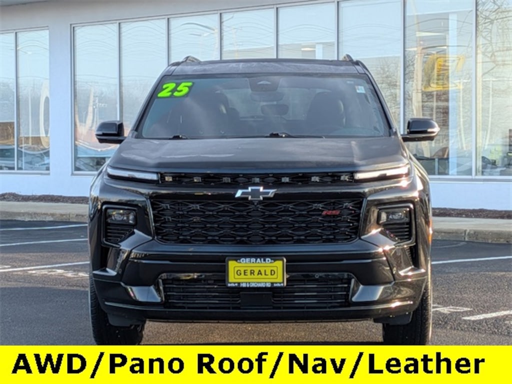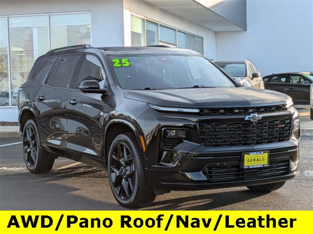 2025 Chevrolet Traverse RS Mosaic Black Metallic *4X4, *BLUETOOTH, *HEATED SEATS, *LEATHER INTERIOR, *NAVIGATION, *ONE OWNER, *REAR VIEW CAMERA, *SUNROOF/MOONROOF, 12 Speakers, 1st and 2nd Row All-Weather Floor Liners, 3rd Row All-Weather Floor Liner, 3rd row seats: split-bench, 4-Wheel Disc Brakes, 6-Way Power Front Passenger Seat Adjuster, 8-Way Power Driver Seat Adjuster, ABS brakes, Air Conditioning, Alloy wheels, AM/FM radio: SiriusXM with 360L, Apple CarPlay/Android Auto, Auto High-beam Headlights, Auto tilt-away steering wheel, Auto-dimming door mirrors, Automatic temperature control, Bose Premium 12-Speaker Audio System Feature, Brake assist, Bumpers: body-color, Child-Seat-Sensing Airbag, Compass, Delay-off headlights, Driver 4-Way Power Lumbar Seat Adjuster, Driver door bin, Driver vanity mirror, Dual front impact airbags, Dual front side impact airbags, Electronic Stability Control, Emergency communication system: OnStar, Exterior Parking Camera Rear, Floor Liner Package, Four wheel independent suspension, Front anti-roll bar, Front Bucket Seats, Front Center Armrest, Front dual zone A/C, Front Passenger 4-Way Power Lumbar Seat Adjuster, Front reading lights, Fully automatic headlights, Garage door transmitter, Heated door mirrors, Heated front seats, Heated rear seats, Heated steering wheel, Illuminated entry, Low tire pressure warning, Memory seat, Navigation System, Occupant sensing airbag, Outside temperature display, Overhead airbag, Overhead console, Panic alarm, Passenger door bin, Passenger vanity mirror, Perforated Leather-Appointed Seat Trim, Power door mirrors, Power driver seat, Power Dual Glass Panoramic Sliding Sunroof, Power Liftgate, Power passenger seat, Power steering, Power windows, Preferred Equipment Group 2RS, Radio data system, Radio: : Audio System w/17.7" Diagonal Display, Rain sensing wipers, Rear air conditioning, Rear anti-roll bar, Rear reading lights, Rear window defroster, Rear window wiper, Remote keyless entry, Security system, SiriusXM with 360L Trial Subscription, Speed control, Speed-sensing steering, Spoiler, Sport steering wheel, Steering wheel memory, Steering wheel mounted audio controls, Tachometer, Telescoping steering wheel, Tilt steering wheel, Traction control, Trip computer, Turn signal indicator mirrors, Variably intermittent wipers, Ventilated front seats, Voltmeter.