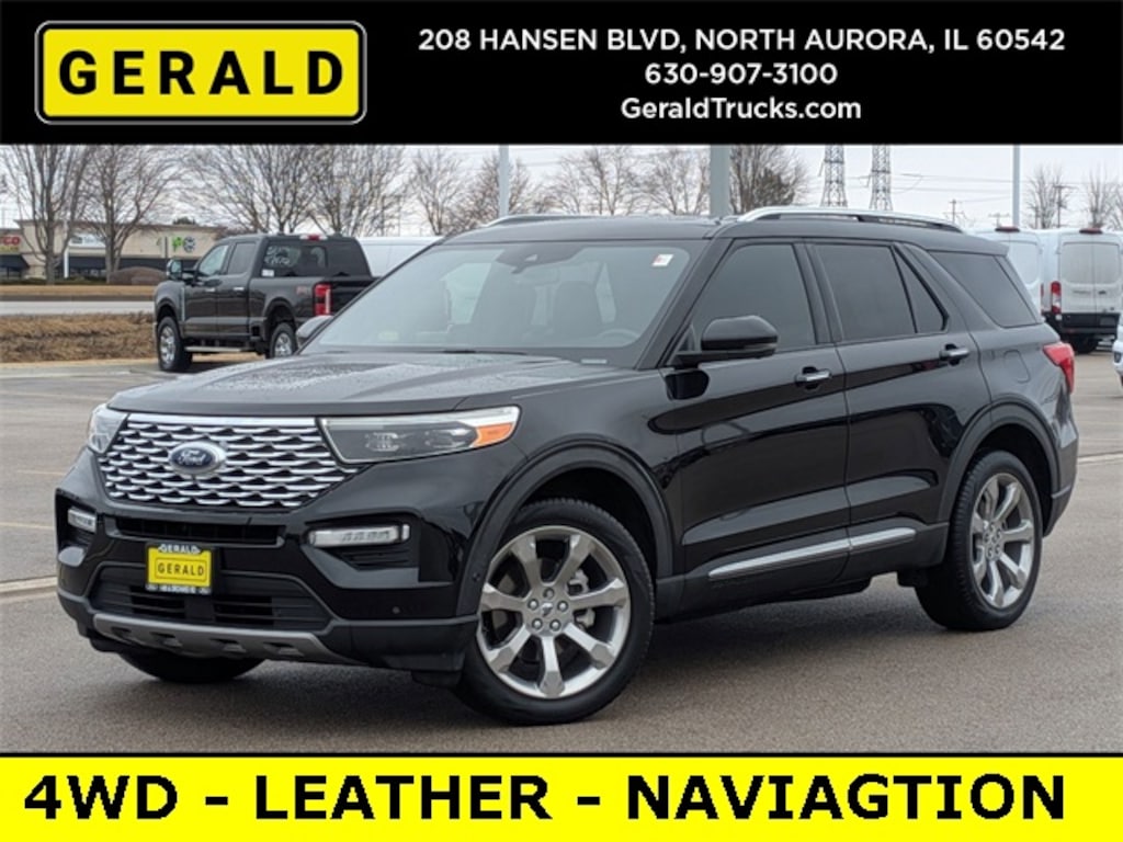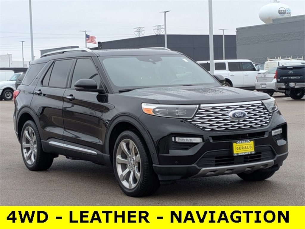 2020 Ford Explorer Platinum 4WD LOADED WITH OPTIONS 630 907 3100 GERALD FORD is the ultimate choice for anyone searching for a luxury three-row SUV with premium comfort, powerful performance, and top-tier technology. Finished in a sleek Black exterior with an upscale Ebony interior with Light Slate Uppers, this Explorer Platinum delivers bold styling and first-class refinement. Powered by the impressive 3.0L EcoBoost V6 engine paired with a smooth 10-speed automatic transmission, it offers outstanding acceleration, strong towing capability, and confident highway driving. Equipped with advanced 4WD, this SUV is ready for all-weather conditions, Midwest winters, and family adventures. This Platinum trim is fully loaded with sought-after features including leather seating, heated and ventilated front seats, heated second-row seats, panoramic sunroof, premium Bang & Olufsen audio system, large touchscreen with navigation, Apple CarPlay and Android Auto, wireless charging, power-folding third-row seating, hands-free power liftgate, blind spot monitoring, lane keeping assist, adaptive cruise control, 360-degree camera, parking sensors, and Ford Co-Pilot360 safety technology. With only 53,785 miles, this Explorer Platinum is an exceptional value for drivers looking for a fully equipped, high-demand Ford Explorer Platinum SUV with luxury, capability, and space at Gerald Ford.