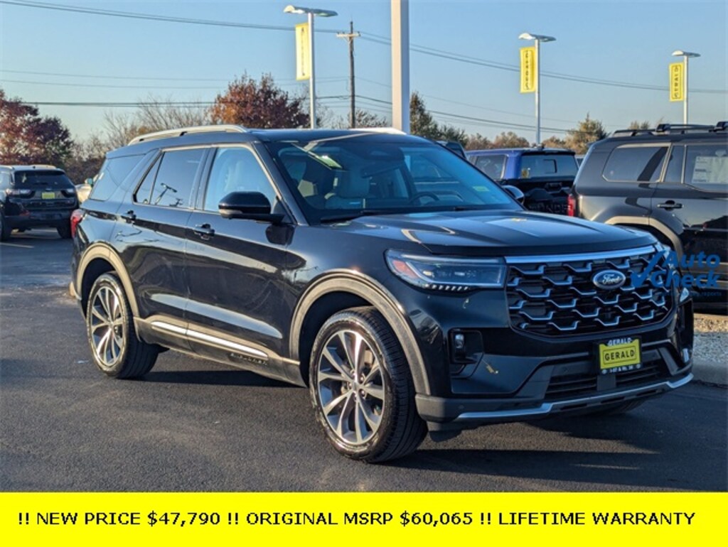 New Price! 2025 Ford Explorer Platinum 4WD Black Metallic *BLUETOOTH, *BACKUP CAMERA, *MOONROOF, *LEATHER, * 4X4, Equipment Group 600A Standard Package, Leather Seating Surfaces Sport Captain Chairs, Lux Leather Package, Navigation System, Platinum Badges on Front Row Seats, Quilting & Stitching on Door Panels, Quilting & Stitching on Seats, Ultimate Package, Wheels: 21" Dark Alloy-Painted Machined Aluminum.