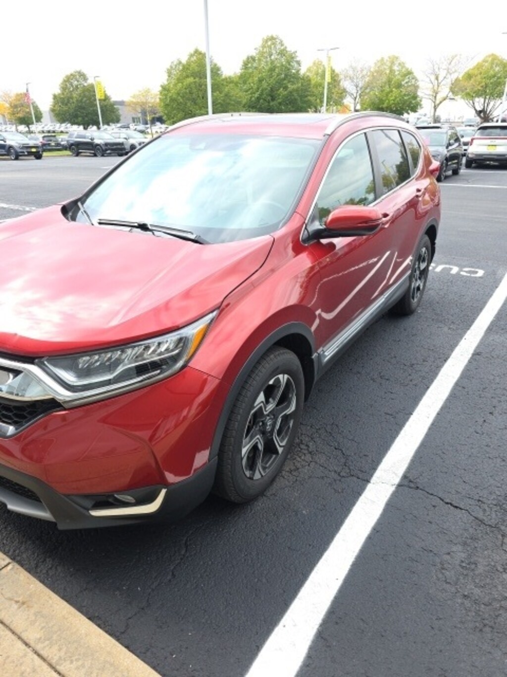 Recent Arrival! 2019 Honda CR-V Touring Red *BLUETOOTH, *HEATED SEATS, *LEATHER INTERIOR, *NAVIGATION, *ONE OWNER, *REAR VIEW CAMERA, *SUNROOF/MOONROOF, 18" Alloy Wheels, 4-Wheel Disc Brakes, 5.64 Axle Ratio, 9 Speakers, ABS brakes, Air Conditioning, Alloy wheels, AM/FM radio: SiriusXM, Apple CarPlay/Android Auto, Auto High-beam Headlights, Auto-dimming Rear-View mirror, Automatic temperature control, Blind Spot Information (BSI) System warning, Brake assist, Bumpers: body-color, Compass, Delay-off headlights, Driver door bin, Driver vanity mirror, Dual front impact airbags, Dual front side impact airbags, Electronic Stability Control, Exterior Parking Camera Rear, Forward collision: Collision Mitigation Braking System (CMBS) + FCW mitigation, Four wheel independent suspension, Front anti-roll bar, Front Bucket Seats, Front Center Armrest, Front dual zone A/C, Front fog lights, Front reading lights, Fully automatic headlights, Garage door transmitter: HomeLink, Heated door mirrors, Heated Front Bucket Seats, Heated front seats, Illuminated entry, Lane departure: Lane Keeping Assist System (LKAS) active, Leather Seat Trim, Leather Shift Knob, Low tire pressure warning, Memory seat, Navigation system: Honda Satellite-Linked Navigation System, Occupant sensing airbag, Outside temperature display, Overhead airbag, Overhead console, Panic alarm, Passenger door bin, Passenger vanity mirror, Power door mirrors, Power driver seat, Power Liftgate, Power moonroof, Power passenger seat, Power steering, Power windows, Radio data system, Radio: AM/FM/HD/SiriusXM Audio System, Rain sensing wipers, Rear anti-roll bar, Rear seat center armrest, Rear window defroster, Rear window wiper, Remote keyless entry, Roof rack: rails only, Security system, Speed control, Speed-sensing steering, Speed-Sensitive Wipers, Split folding rear seat, Spoiler, Steering wheel mounted audio controls, Tachometer, Telescoping steering wheel, Tilt steering wheel, Traction control, Trip computer, Turn signal indicator mirrors, Variably intermittent wipers.