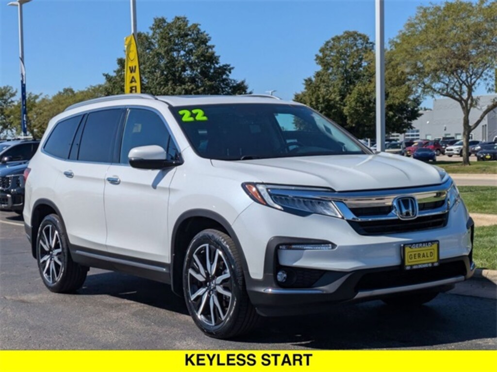 Recent Arrival! 2022 Honda Pilot Touring 7 Passenger White 10 Speakers, 3rd row seats: split-bench, 4-Wheel Disc Brakes, 4.33 Axle Ratio, A/V remote: CabinControl, ABS brakes, Air Conditioning, Alloy wheels, AM/FM radio: SiriusXM, Apple CarPlay/Android Auto, Auto High-beam Headlights, Auto-dimming Rear-View mirror, Automatic temperature control, Blind Spot Information (BSI) System warning, Brake assist, Bumpers: body-color, Compass, Delay-off headlights, Driver door bin, Driver vanity mirror, Dual front impact airbags, Dual front side impact airbags, Electronic Stability Control, Emergency communication system: HondaLink, Exterior Parking Camera Rear, Forward collision: Collision Mitigation Braking System (CMBS) + FCW mitigation, Four wheel independent suspension, Front anti-roll bar, Front Bucket Seats, Front Center Armrest, Front dual zone A/C, Front fog lights, Front reading lights, Fully automatic headlights, Garage door transmitter: HomeLink, Headphones, Heated door mirrors, Heated Front Bucket Seats, Heated front seats, Heated rear seats, Illuminated entry, Lane departure: Lane Keeping Assist System (LKAS) active, Leather Seat Trim, Low tire pressure warning, Memory seat, Navigation system: Honda Satellite-Linked Navigation System, Occupant sensing airbag, Outside temperature display, Overhead airbag, Overhead console, Panic alarm, Passenger door bin, Passenger vanity mirror, Power door mirrors, Power driver seat, Power Liftgate, Power moonroof, Power passenger seat, Power steering, Power windows, Radio data system, Radio: 590-Watt Premium Audio System, Rear air conditioning, Rear anti-roll bar, Rear audio controls, Rear reading lights, Rear window defroster, Rear window wiper, Reclining 3rd row seat, Remote keyless entry, Roof rack: rails only, Security system, Speed control, Speed-sensing steering, Speed-Sensitive Wipers, Split folding rear seat, Spoiler, Steering wheel mounted audio controls, Tachometer, Telescoping steering wheel, Tilt steering wheel, Traction control, Trip computer, Turn signal indicator mirrors, Variably intermittent wipers, Wheels: 20" Machine-Finished Alloy.