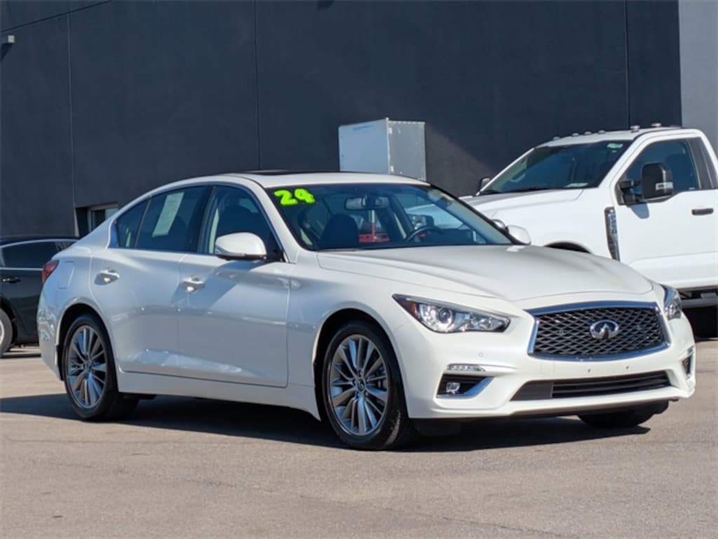16 Speakers, 18" x 7.5" Aluminum Alloy Wheels, 4-Wheel Disc Brakes, ABS brakes, Air Conditioning, Alloy wheels, AM/FM radio: SiriusXM, Auto High-beam Headlights, Auto tilt-away steering wheel, Auto-dimming Rear-View mirror, Automatic temperature control, Blind Spot Warning, Brake assist, Bumpers: body-color, Cargo Net, Cargo Package, CD player, Compass, Delay-off headlights, Driver door bin, Driver vanity mirror, Dual front impact airbags, Dual front side impact airbags, Electronic Stability Control, Emergency communication system: INFINITI Connection, Exterior Parking Camera Rear, First Aid Kit, Four wheel independent suspension, Front anti-roll bar, Front Bucket Seats, Front Center Armrest, Front dual zone A/C, Front fog lights, Front reading lights, Fully automatic headlights, Garage door transmitter: HomeLink, Heated door mirrors, Heated Front Bucket Seats, Heated front seats, Heated steering wheel, Illuminated entry, Leather Shift Knob, Leather steering wheel, Leather-Appointed Seating Surfaces, Literature Kit, Low tire pressure warning, Memory seat, Occupant sensing airbag, Outside temperature display, Overhead airbag, Overhead console, Panic alarm, Passenger door bin, Passenger vanity mirror, Power door mirrors, Power driver seat, Power moonroof, Power passenger seat, Power steering, Power windows, Radio data system, Radio: INFINITI InTouch Dual HD Display System, Rain sensing wipers, Rear anti-roll bar, Rear reading lights, Rear seat center armrest, Rear USB/Power Delivery Port, Rear window defroster, Remote keyless entry, Security system, Shopping Bag Hooks, Speed control, Speed-Sensitive Wipers, Splash Guards, Split folding rear seat, Steering wheel memory, Steering wheel mounted audio controls, Tachometer, Telescoping steering wheel, Tilt steering wheel, Traction control, Trip computer, Trunk Mat, Turn signal indicator mirrors, Variably intermittent wipers.