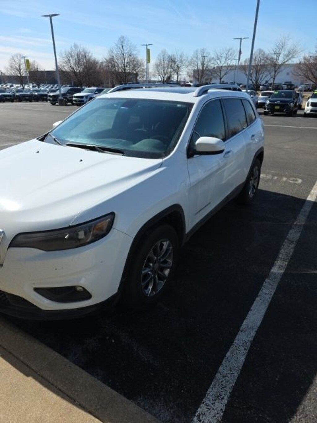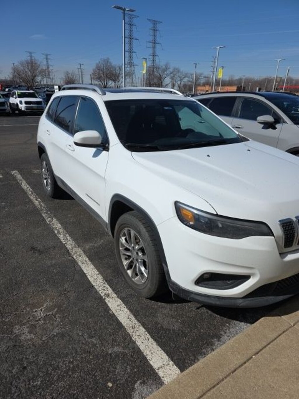 Recent Arrival! 2019 Jeep Cherokee Latitude Plus Bright White Clearcoat *4X4, *BLUETOOTH, *ONE OWNER, *REAR VIEW CAMERA, *SUNROOF/MOONROOF, 115V Auxiliary Power Outlet, 3.734 Axle Ratio, 4-Wheel Disc Brakes, 6 Speakers, ABS brakes, Air Conditioning, Air Conditioning ATC w/Dual Zone Control, All-Season Floor Mats, Alloy wheels, AM/FM radio: SiriusXM, Anti-whiplash front head restraints, Apple CarPlay/Android Auto, Auto-Dimming Rear-View Mirror, AutoStick Automatic Transmission, Auxiliary Transmission Oil Cooler, Brake assist, Bumpers: body-color, Cloth/Premium Vinyl Bucket Seats, Cold Weather Group, Comfort/Convenience Group, Compass, Delay-off headlights, Driver door bin, Driver vanity mirror, Dual front impact airbags, Dual front side impact airbags, Electronic Stability Control, Engine Block Heater, Four wheel independent suspension, Front anti-roll bar, Front Bucket Seats, Front Center Armrest, Front fog lights, Front reading lights, Fully automatic headlights, Heated door mirrors, Heated Front Seats, Heated Steering Wheel, Humidity Sensor, Illuminated entry, Integrated Voice Command w/Bluetooth, Knee airbag, Leather Shift Knob, Low tire pressure warning, Normal Duty Suspension, Occupant sensing airbag, Outside temperature display, Overhead airbag, Overhead console, Panic alarm, ParkView Rear Back-Up Camera, Passenger door bin, Passenger vanity mirror, Power door mirrors, Power driver seat, Power Front/Fixed Rear Full Sunroof, Power Liftgate, Power steering, Power windows, Premium Air Filter, Quick Order Package 26D, Radio data system, Radio: Uconnect 4 w/7" Display, Rear anti-roll bar, Rear reading lights, Rear seat center armrest, Rear side impact airbag, Rear window defroster, Rear window wiper, Remote keyless entry, Remote Start System, Roof rack: rails only, Security Alarm, SiriusXM Satellite Radio, Speed control, Speed-sensing steering, Split folding rear seat, Spoiler, Steering wheel mounted audio controls, Stop-Start Multiple VSM System, Tachometer, Telescoping steering wheel, Tilt steering wheel, Traction control, Trip computer, Turn signal indicator mirrors, Universal Garage Door Opener, USB Host Flip, Variably intermittent wipers, Voltmeter, Wheels: 17" x 7" Satin Carbon Aluminum, Windshield Wiper De-Icer.
