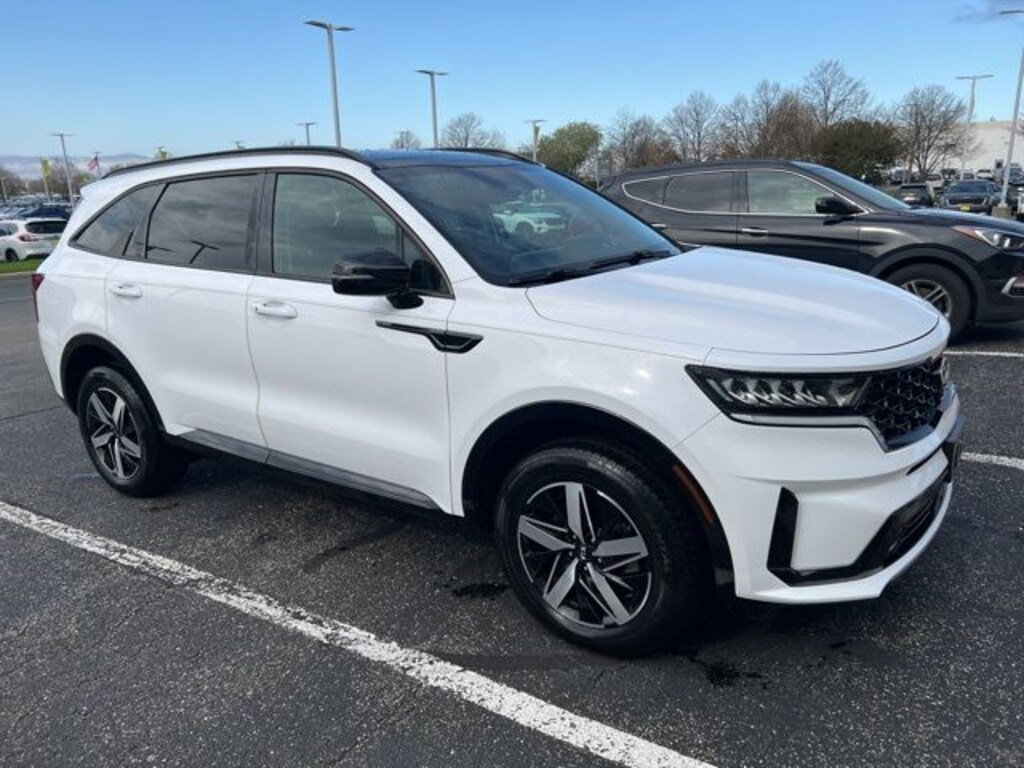 Recent Arrival! 2021 Kia Sorento EX EX AWD Glacial White Pearl AWD, 18" Machine-Finished Alloy Wheels, 3.316 Axle Ratio, 3rd row seats: split-bench, 4-Wheel Disc Brakes, 6 Speakers, ABS brakes, Air Conditioning, Alloy wheels, AM/FM radio: SiriusXM, Apple CarPlay & Android Auto, Auto High-beam Headlights, Automatic temperature control, Brake assist, Bumpers: body-color, Carpeted Floor Mats, Delay-off headlights, Driver door bin, Driver vanity mirror, Dual front impact airbags, Dual front side impact airbags, Electronic Stability Control, Exterior Parking Camera Rear, Four wheel independent suspension, Front anti-roll bar, Front Bucket Seats, Front Center Armrest, Front dual zone A/C, Front fog lights, Front reading lights, Fully automatic headlights, Heated door mirrors, Heated Front Bucket Seats, Heated front seats, Illuminated entry, Knee airbag, Leather Shift Knob, Leather steering wheel, Low tire pressure warning, Occupant sensing airbag, Outside temperature display, Overhead airbag, Overhead console, Panic alarm, Panoramic Sunroof Package, Passenger door bin, Passenger vanity mirror, Power door mirrors, Power driver seat, Power Liftgate, Power steering, Power Sunroof w/Power Sunshade, Power windows, Premium Leatherette Seat Trim, Radio data system, Radio: AM/FM Audio System, Rear air conditioning, Rear anti-roll bar, Rear reading lights, Rear window defroster, Rear window wiper, Remote keyless entry, Roof rack: rails only, Security system, Speed control, Speed-sensing steering, Split folding rear seat, Spoiler, Steering wheel mounted audio controls, Tachometer, Telescoping steering wheel, Tilt steering wheel, Traction control, Trip computer, Turn signal indicator mirrors, Variably intermittent wipers.