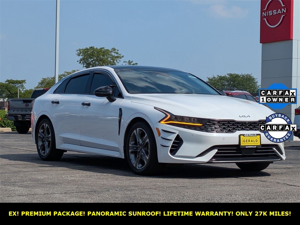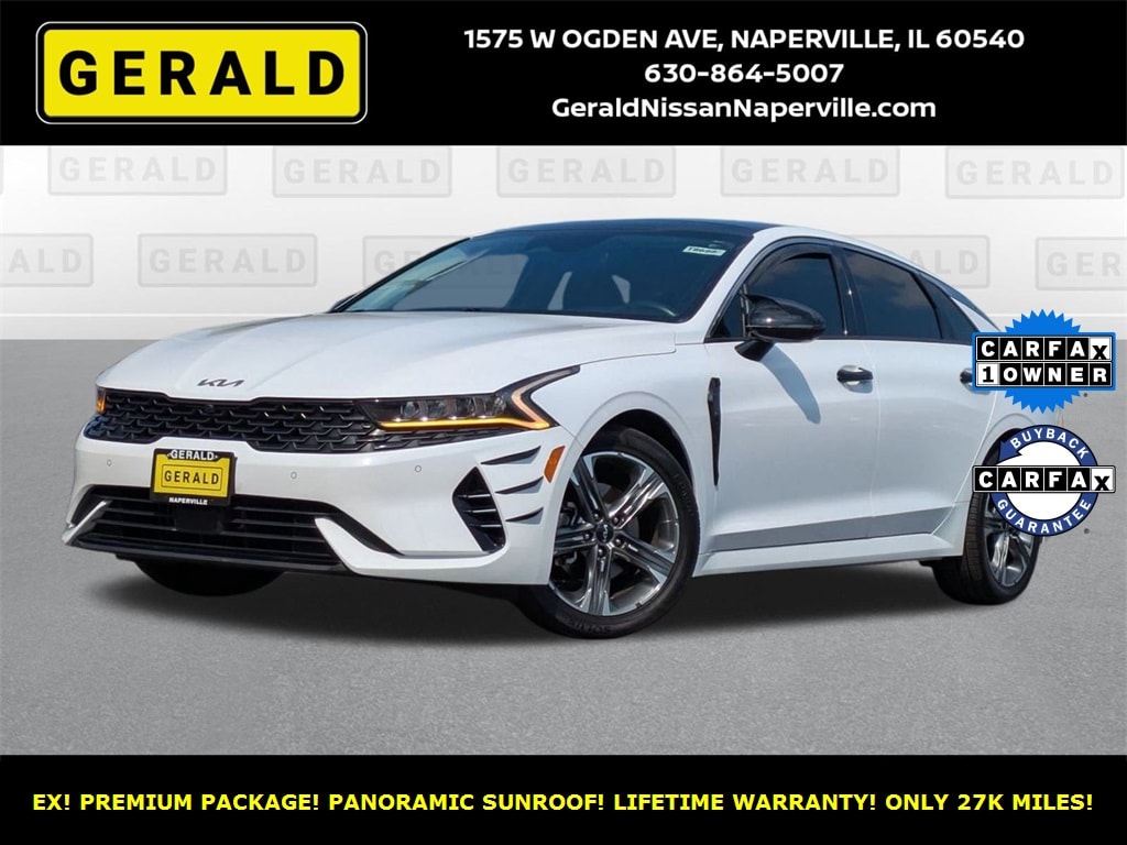 2023 KIA K5 EX! 1 OWNER! LIFETIME WARRANTY! GLACIAL WHITE PEARL! EX PREMIUM PACKAGE WITH ADAPTIVE CRUISE CONTROL, HEATED SEATS AND STEERING WHEEL, MEMORY SEATS, AND PREMIUM AUDIO! PANORAMIC SUNROOF! REMOTE START! CARPLAY! ANDROID AUTO! ABSOLUTELY LIKE NEW! HURRY IN! COME SEE US AT GERALD NISSAN OF NAPERVILLE TODAY!!!