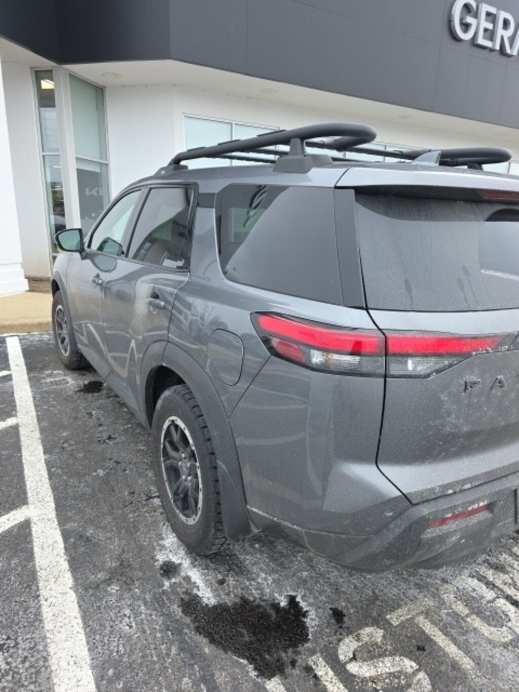 Recent Arrival! 2024 Nissan Pathfinder Rock Creek Gun Metallic *4X4, *HEATED SEATS, *LEATHER INTERIOR, *ONE OWNER, *REAR VIEW CAMERA, 3rd row seats: bench, 4-Wheel Disc Brakes, 6 Speakers, ABS brakes, Air Conditioning, Alloy wheels, AM/FM radio: SiriusXM, Auto High-beam Headlights, Automatic temperature control, Axle Ratio: 4.334, Black Splash Guards (Set of 4), Brake assist, Delay-off headlights, Driver door bin, Driver vanity mirror, Dual front impact airbags, Dual front side impact airbags, Electronic Stability Control, Emergency communication system, Four wheel independent suspension, Front anti-roll bar, Front Bucket Seats, Front Center Armrest, Front dual zone A/C, Front fog lights, Front reading lights, Fully automatic headlights, Heated door mirrors, Heated Front Bucket Seats, Heated front seats, Illuminated entry, Knee airbag, Leather steering wheel, Leatherette-Appointed Seating Surfaces, Low tire pressure warning, NissanConnect featuring Apple CarPlay and Android Auto, Occupant sensing airbag, Outside temperature display, Overhead airbag, Overhead console, Panic alarm, Passenger door bin, Passenger vanity mirror, Power door mirrors, Power driver seat, Power steering, Power windows, Radio data system, Radio: AM/FM Audio System w/NissanConnect, Rear air conditioning, Rear anti-roll bar, Rear Parking Sensors, Rear reading lights, Rear side impact airbag, Rear window defroster, Rear window wiper, Reclining 3rd row seat, Remote keyless entry, Rock Creek AS Floor Liners & Cargo Area Protector, Rock Creek Roof Rack, Roof rack, Security system, Speed control, Speed-sensing steering, Split folding rear seat, Spoiler, Steering wheel mounted audio controls, Tachometer, Telescoping steering wheel, Tilt steering wheel, Traction control, Trip computer, Turn signal indicator mirrors, Variably intermittent wipers, Wheels: 18" x 8J Machined Alloy w/Black Finish.