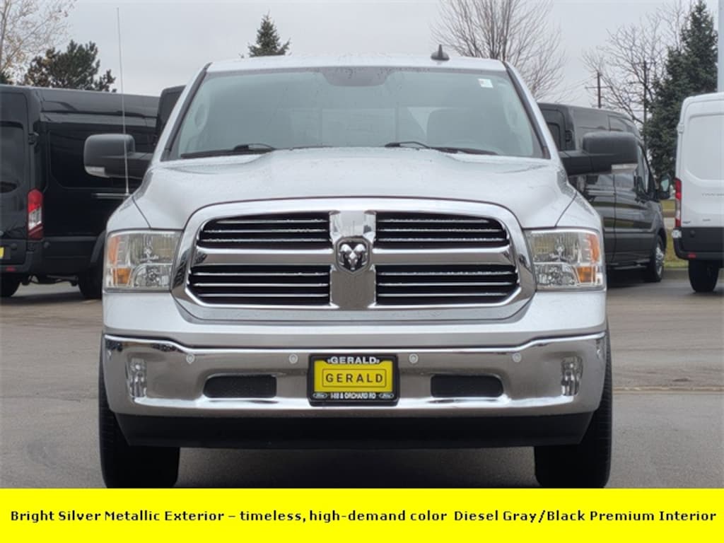 The Big Horn package adds premium style and comfort that stand out everywhere. The Diesel Gray/Black interior offers upgraded materials, great seat comfort, and Rams well-known quiet, refined cabin. Inside you get the features customers want: large touchscreen display, Bluetooth connectivity, backup camera, power driver seat, steering-wheel audio controls, dual-zone climate control, premium sound, multiple USB ports, and excellent storage space. On the outside, the chrome bumpers, fog lamps, Big Horn grille, tow hooks, and alloy wheels give this truck a clean, bold, premium look.