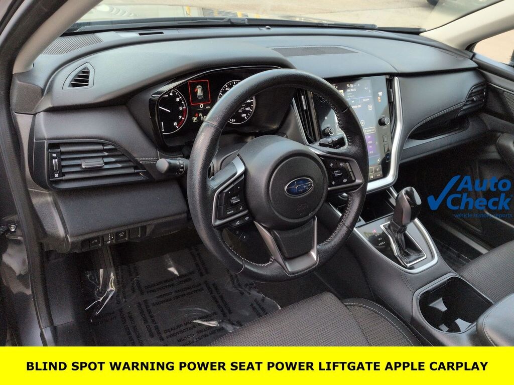 4-Wheel Disc Brakes, ABS brakes, All-Weather Floor Liners, Alloy wheels, AM/FM radio: SiriusXM, Auto High-beam Headlights, Auto-Dimming Exterior Mirror w/Approach Light, Auto-Dimming Mirror w/Compass & HomeLink, Blind Spot Detection (BSD), Brake assist, BSD w/RCTA & Keyless Access & Push Button Start, Bumpers: body-color, Cloth Upholstery, Dome Light LED Upgrade, Driver door bin, Driver vanity mirror, Dual front impact airbags, Dual front side impact airbags, Electronic Stability Control, Emergency communication system: STARLINK Safety and Security (Subscription Required), Exterior Parking Camera Rear, Four wheel independent suspension, Front anti-roll bar, Front Bucket Seats, Front Center Armrest w/Storage, Front fog lights, Front reading lights, Fully automatic headlights, Hands-Free Power Rear Gate, Heated door mirrors, Heated Front Bucket Seats, Heated front seats, Illuminated entry, Keyless Access w/Push Button Start, Knee airbag, Low tire pressure warning, Occupant sensing airbag, Outside temperature display, Overhead airbag, Overhead console, Panic alarm, Passenger door bin, Passenger vanity mirror, Popular Package #1, Power door mirrors, Power driver seat, Power steering, Power windows, Radio: Subaru STARLINK 11.6" Multimedia Plus Sys, Rear anti-roll bar, Rear Bumper Cover, Rear Cross Traffic Alert (RCTA), Rear Seat Back Protector, Rear seat center armrest, Rear window wiper, RearView Monitor, Remote keyless entry, Roof rack, Security system, Speed control, Speed-sensing steering, Split folding rear seat, Spoiler, STARLINK/Apple CarPlay/Android Auto, Steering wheel mounted audio controls, Steering Wheel Paddle Shift Control Switches, Tachometer, Telescoping steering wheel, Tilt steering wheel, Traction control, Trip computer, Turn signal indicator mirrors, Variably intermittent wipers. 26/33 City/Highway MPG