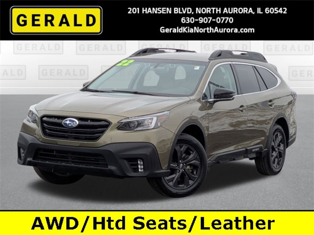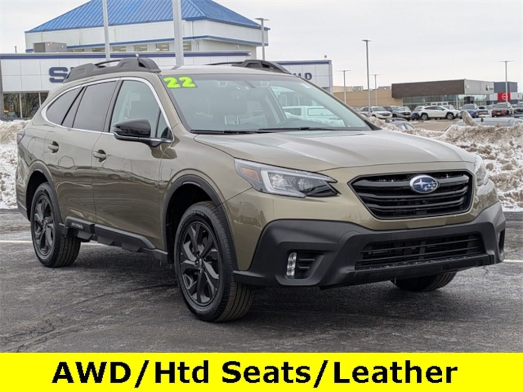 2022 Subaru Outback Onyx Edition XT Autumn Green Metallic *BLUETOOTH, *HEATED SEATS, *LEATHER INTERIOR, *ONE OWNER, *REAR VIEW CAMERA, 4-Wheel Disc Brakes, 4.111 Axle Ratio, 6 Speakers, ABS brakes, Air Conditioning, All-Weather Floor Liners, Alloy wheels, AM/FM radio: SiriusXM, Auto High-beam Headlights, Auto-Dimming Exterior Mirror w/Approach Light, Auto-dimming Rear-View mirror, Automatic temperature control, Brake assist, Bumpers: body-color, Compass, Driver door bin, Driver vanity mirror, Dual front impact airbags, Dual front side impact airbags, Electronic Stability Control, Emergency communication system: STARLINK Safety and Security (Subscription Required), Exterior Parking Camera Rear, Four wheel independent suspension, Front anti-roll bar, Front Bucket Seats, Front Center Armrest w/Storage, Front dual zone A/C, Front fog lights, Front reading lights, Fully automatic headlights, Garage door transmitter: HomeLink, Heated door mirrors, Heated Front Bucket Seats, Heated front seats, Heated rear seats, Illuminated entry, Knee airbag, Leather steering wheel, Low tire pressure warning, Occupant sensing airbag, Outside temperature display, Overhead airbag, Overhead console, Panic alarm, Passenger door bin, Passenger vanity mirror, Power door mirrors, Power driver seat, Power Liftgate, Power passenger seat, Power steering, Power windows, Radio: Subaru STARLINK 11.6" Multimedia Plus Sys, Rear anti-roll bar, Rear Bumper Cover, Rear Seat Back Protector, Rear seat center armrest, Rear window defroster, Rear window wiper, Remote keyless entry, Roof rack, Security system, Speed control, Speed-sensing steering, Split folding rear seat, Spoiler, Standard Model, STARLINK/Apple CarPlay/Android Auto, StarTex-Trimmed Upholstery, Steering wheel mounted audio controls, Steering Wheel Paddle Shift Control Switches, Tachometer, Telescoping steering wheel, Tilt steering wheel, Traction control, Trip computer, Turn signal indicator mirrors, Variably intermittent wipers, Wheels: 18" x 7J Black Aluminum Alloy.