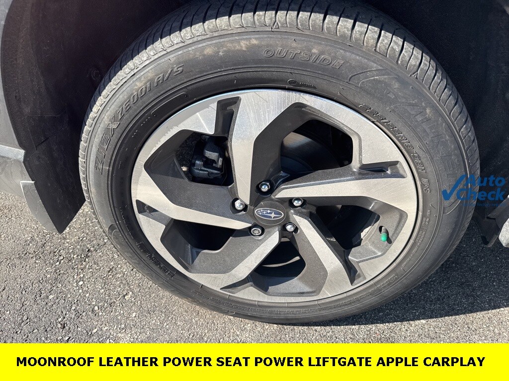 4-Wheel Disc Brakes, 9 Speakers, ABS brakes, Air Conditioning, All-Weather Floor Liners, AM/FM radio: SiriusXM, Anti-whiplash front head restraints, Auto High-beam Headlights, Auto-Dimming Mirror w/Compass & HomeLink, Automatic temperature control, Brake assist, Bumpers: body-color, CD player, Door Edge Guards - Crystal Black Silica, Driver door bin, Driver vanity mirror, Dual front impact airbags, Dual front side impact airbags, Electronic Stability Control, Emergency communication system: STARLINK Safety and Security (Subscription Required), Exterior Parking Camera Rear, Four wheel independent suspension, Front anti-roll bar, Front Bucket Seats, Front Center Armrest, Front dual zone A/C, Front fog lights, Front reading lights, Fully automatic headlights, harman/kardon 9-Speaker Audio System, harman/kardon® Speakers, Heated door mirrors, Heated Front Bucket Seats, Heated front seats, Heated rear seats, Heated steering wheel, HVAC memory, Illuminated entry, Knee airbag, Leather Shift Knob, Low tire pressure warning, Memory seat, Navigation System, Occupant sensing airbag, Outside temperature display, Overhead airbag, Overhead console, Panic alarm, Passenger door bin, Passenger vanity mirror, Perforated Leather-Trimmed Upholstery, Power door mirrors, Power driver seat, Power Liftgate, Power moonroof: Panoramic, Power passenger seat, Power steering, Power windows, Premium audio system: harman/kardon, Radio data system, Radio: Subaru Starlink 8.0" Multimedia Nav System, Rear anti-roll bar, Rear Bumper Cover, Rear seat center armrest, Rear window defroster, Rear window wiper, Remote keyless entry, Roof rack: rails only, Security system, Speed control, Speed-sensing steering, Splash Guards, Split folding rear seat, Spoiler, Standard Model, STARLINK/Apple CarPlay/Android Auto, Steering wheel mounted audio controls, Tachometer, Telescoping steering wheel, Tilt steering wheel, Traction control, Trip computer, Turn signal indicator mirrors, Variably intermittent wipers. 26/33 City/Highway MPG