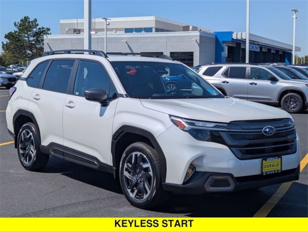 New Price! 2025 Subaru Forester Limited AWD Crystal White Pearl * THIS CAR IS LOCATED AT GERALD HONDA OF MATTESON PLEASE CALL US TODAY AT 708.720.2700 TO SEE IT, * LIFETIME WARRANTY, *ONE OWNER, * APPLE CARPLAY / ANDROID AUTO, *BLUETOOTH, *REAR VIEW CAMERA, * PANORAMIC ROOF, *LEATHER INTERIOR, *HEATED SEATS, * AWD, 6 Speakers, harman/kardon Audio & Navigation & RAB, Reverse Automatic Braking (RAB) System.