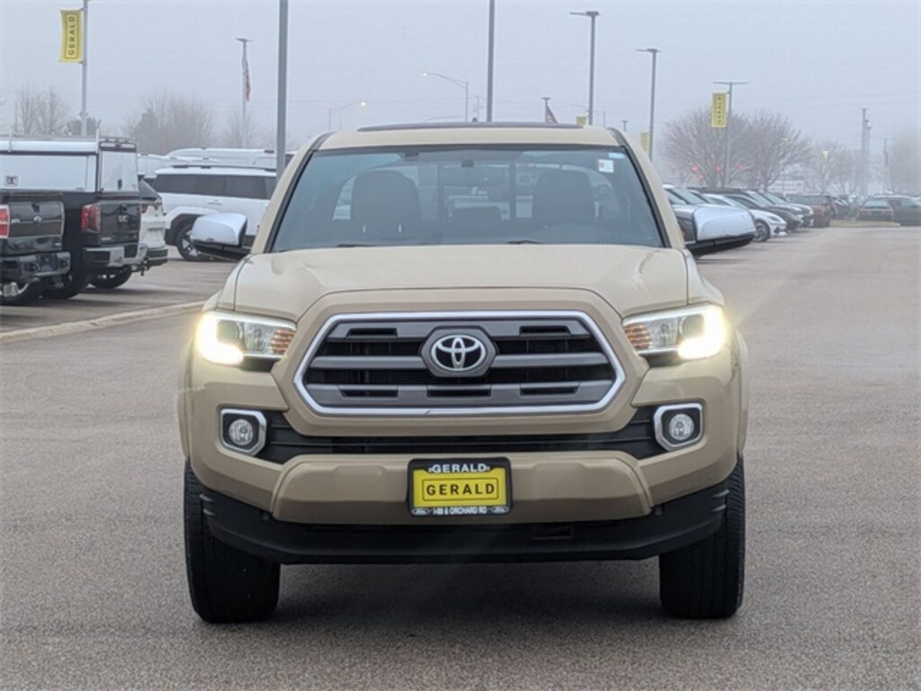 This 2016 Toyota Tacoma Limited V6 4WD Double Cab is a highly sought-after midsize truck known for legendary durability, strong resale value, and all-around capability, making it an excellent choice for work, play, and everyday driving. Powered by a reliable V6 engine paired with a 6-Speed Automatic transmission, this Tacoma delivers confident acceleration, proven performance, and the strength you expect from Toyota, while the 4WD system provides added traction and control for all seasons, job sites, and weekend adventures. Finished in a distinctive Gold exterior, this Limited trim stands out with a refined yet rugged look, complemented by a spacious Double Cab that offers comfort and versatility for passengers and cargo alike. Well equipped with premium features typical of the Limited package, including leather-trimmed seating, power front seats, advanced infotainment, Bluetooth connectivity, backup camera, steering-wheel-mounted controls, premium interior accents, and modern safety features, this Tacoma blends upscale comfort with true truck capability. With 95,731 miles, this Tacoma has been carefully selected for retail sale and has undergone a thorough multi-point inspection to ensure quality, reliability, and confidence. Priced aggressively based on current market conditions, it represents one of the best values in the area for anyone searching for a used Toyota Tacoma V6 4WD, a reliable midsize truck, or a crew cab pickup with long-term dependability. Visit Gerald Ford of North Aurora at 208 Hansen Blvd, North Aurora, IL, or call/text 630-907-3100 today to schedule your test drive Tacomas like this dont stay available long.