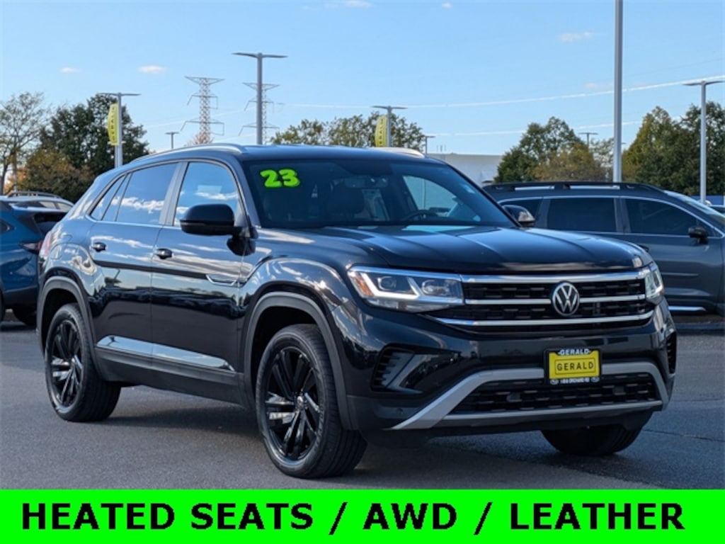 Deep Black Pearl 2023 Volkswagen Atlas Cross Sport 3.6L V6 SE w/Technology AWD w/Sunroof & Leather