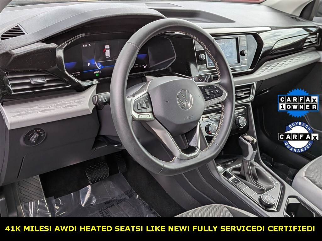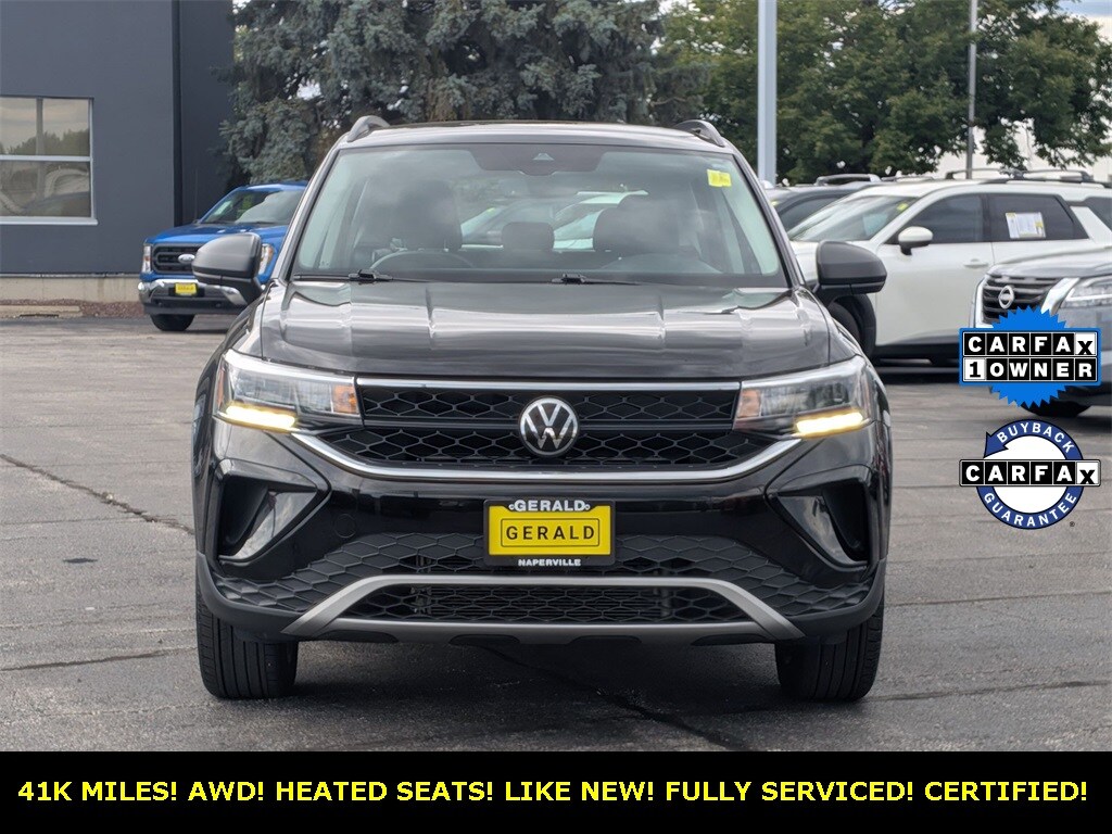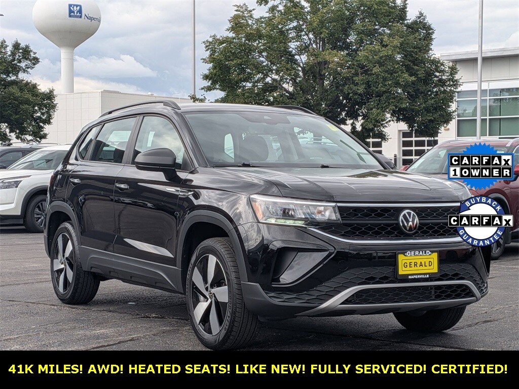 1 OWNER 2023 VOLKSWAGEN TAOS! 4MOTION! CLEAN CARFAX! VERY WELL KEPT! DEEP BLACK PEARL! GRAY AND BLACK INTERIOR! ALL WHEEL DRIVE! HEATED SEATS! BLUETOOTH! BACKUP CAMERA! 18" WHEELS! LED LIGHTING! 32 MPG HIGHWAY! FULLY SERVICED AND READY TO GO! $AVE THOUSANDS VS NEW! COME SEE US AT GERALD NISSAN OF NAPERVILLE TODAY!!!